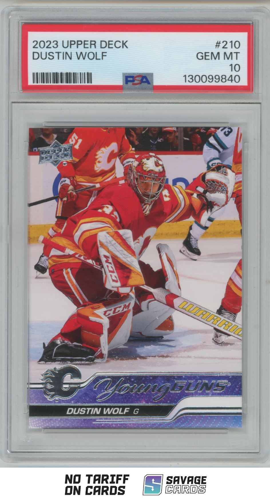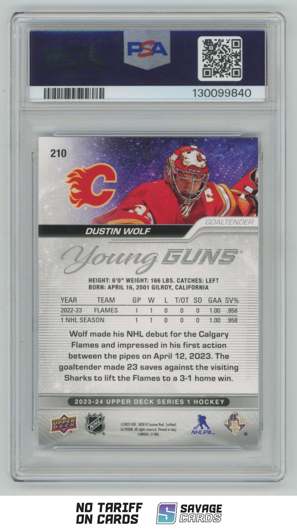 | 2023-24 Upper Deck Young Guns Dustin Wolf PSA 10 #210 Calgary Flames | ||||||||||||||||||