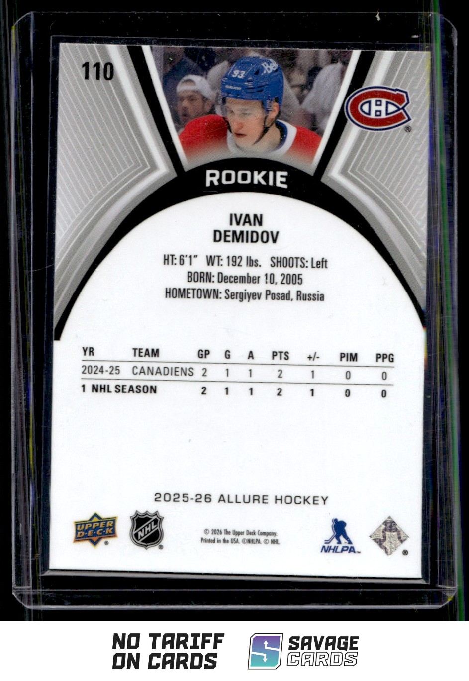 | 2025-26 Upper Deck Allure Ivan Demidov RC #110 Montreal Canadiens | ||||||||||||||||||