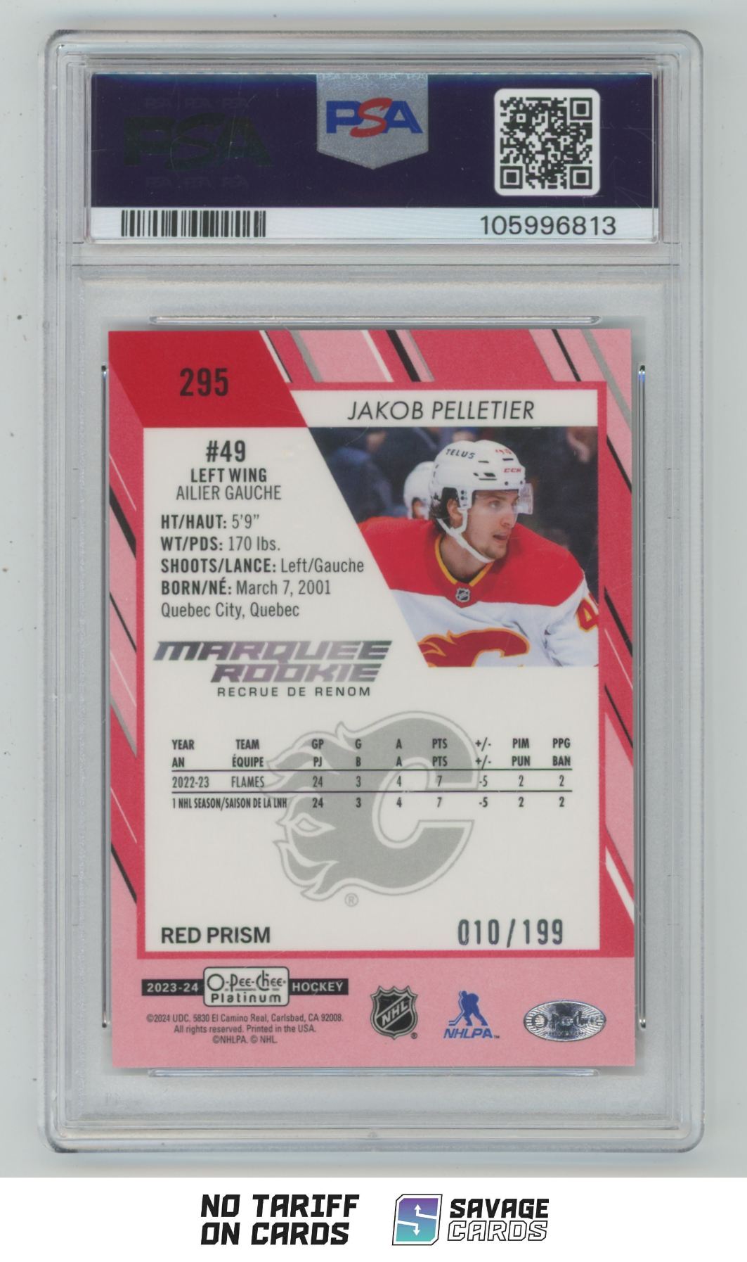 | 2023-24 O-Pee-Chee Platinum Marquee Rookie Red Prism Jakob Pelletier PSA 9 /199 | ||||||||||||||||||||