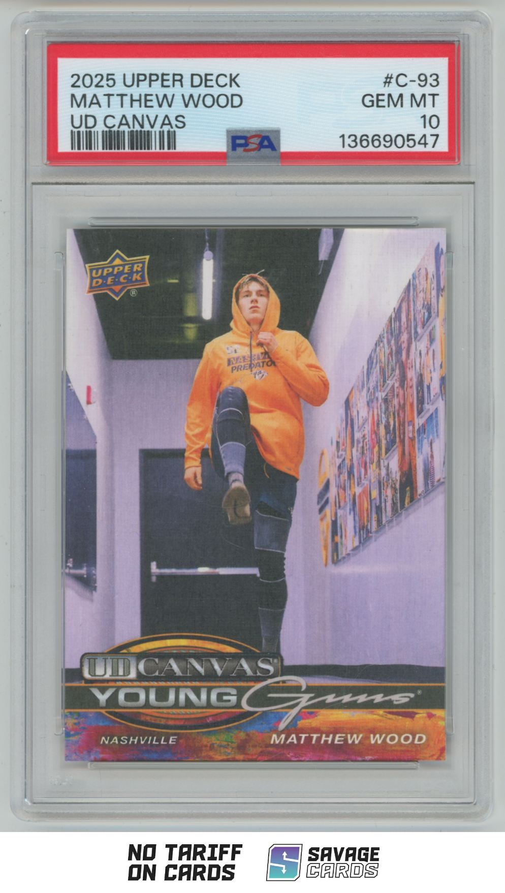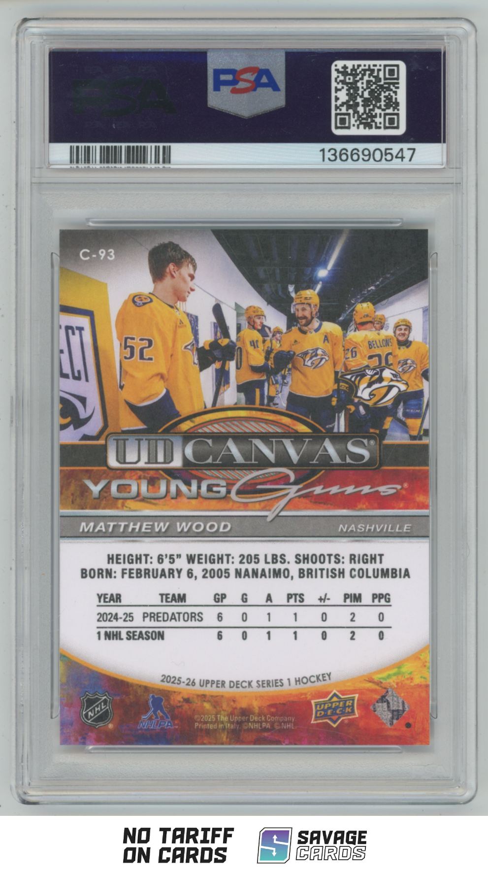 | 2025-26 Upper Deck UD Canvas Young Guns Matthew Wood PSA 10 #C-93 Nashville | ||||||||||||||||||