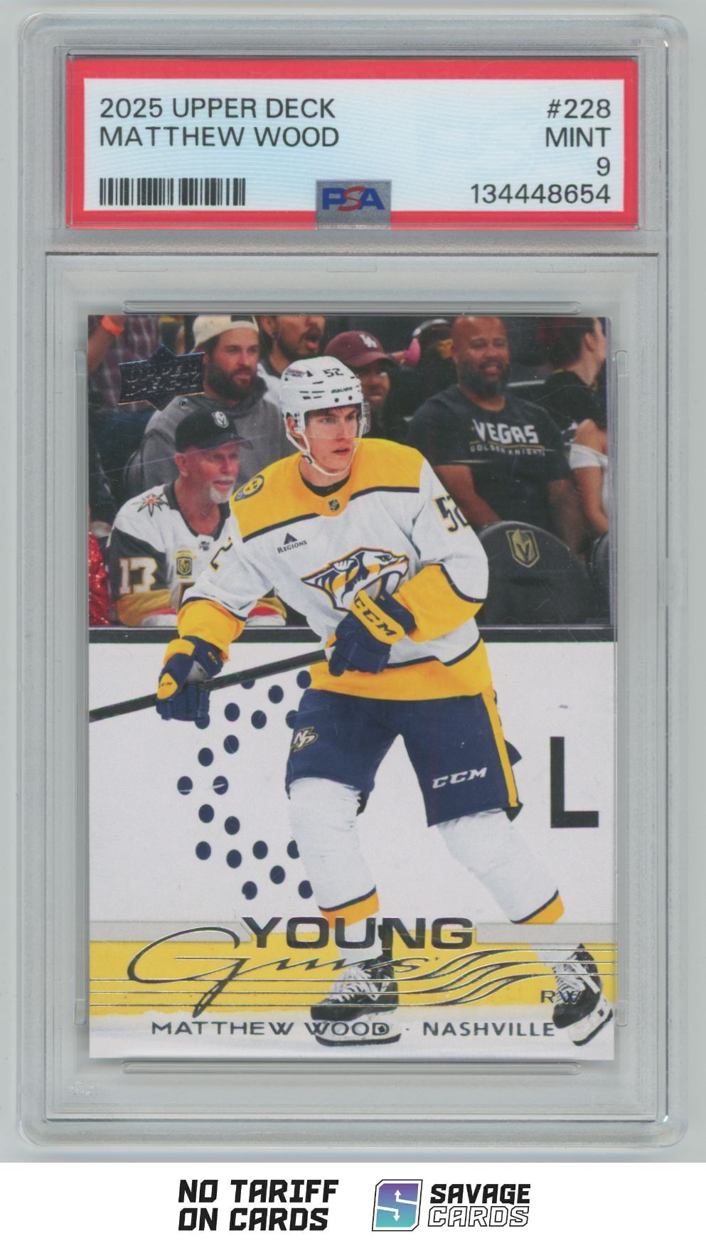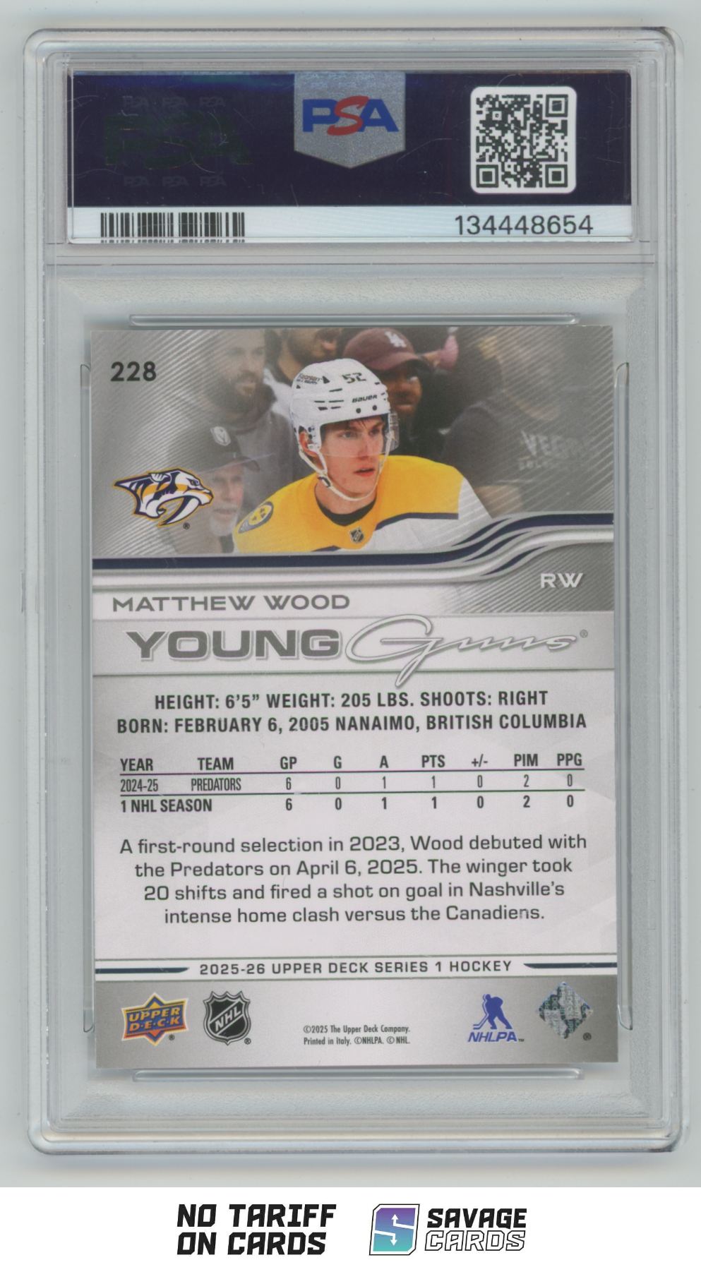 | 2025-26 Upper Deck Young Guns Matthew Wood PSA 9 #228 Nashville Predators | ||||||||||||||||||