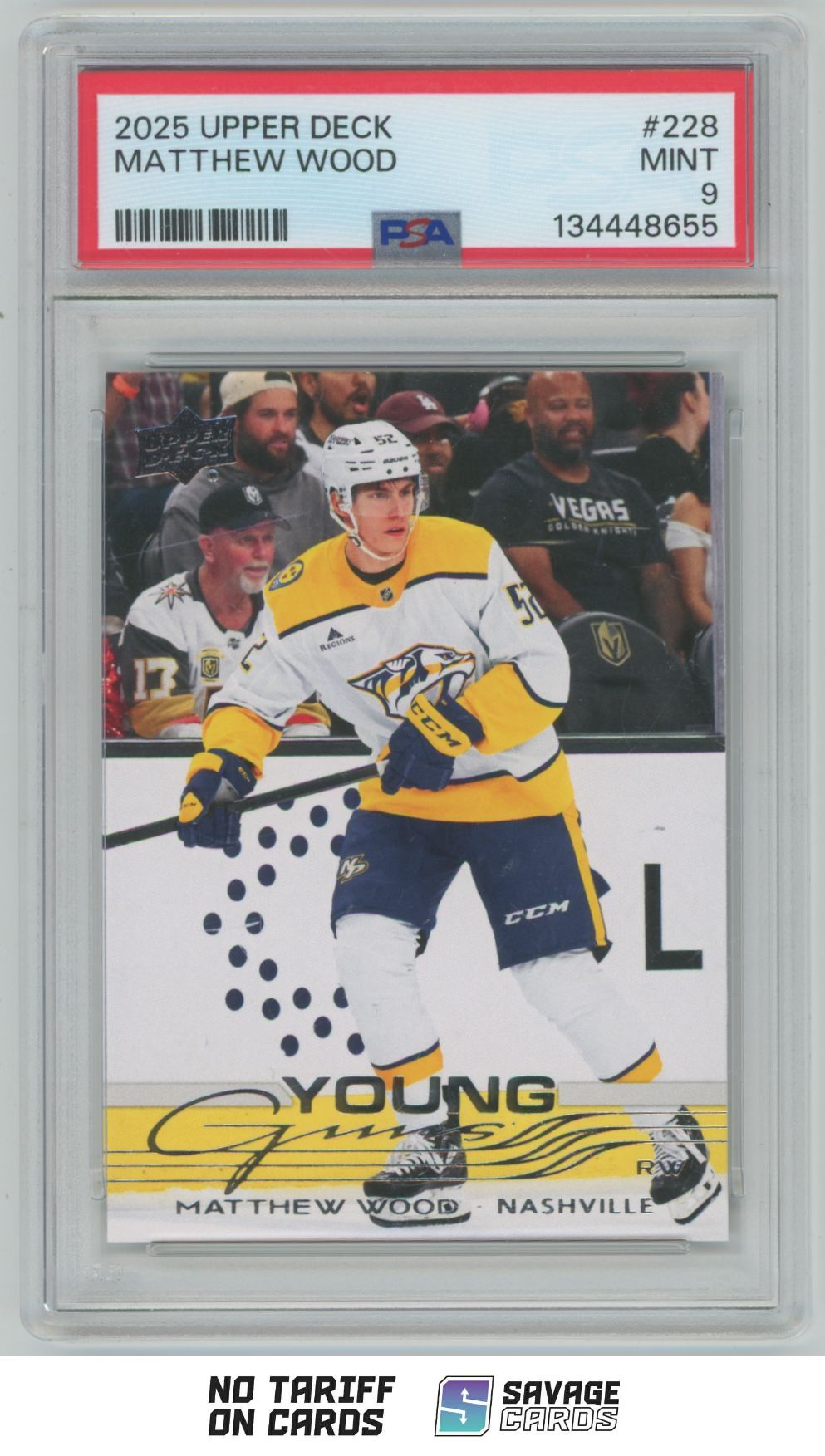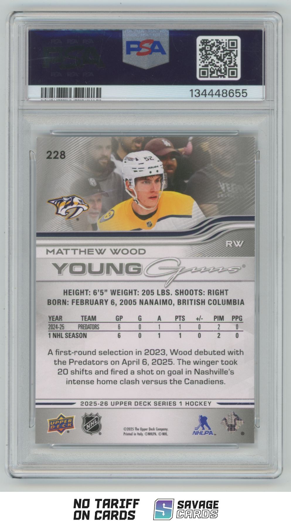 | 2025-26 Upper Deck Young Guns Matthew Wood PSA 9 #228 Nashville Predators | ||||||||||||||||||