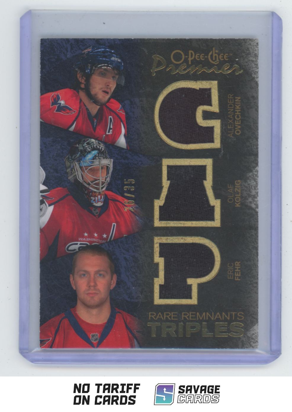 | 2007-08 OPC Premier Rare Remnants Triples Relics Gold Kolzig/Ovechkin/Fehr /35 | ||||||||||||||||||