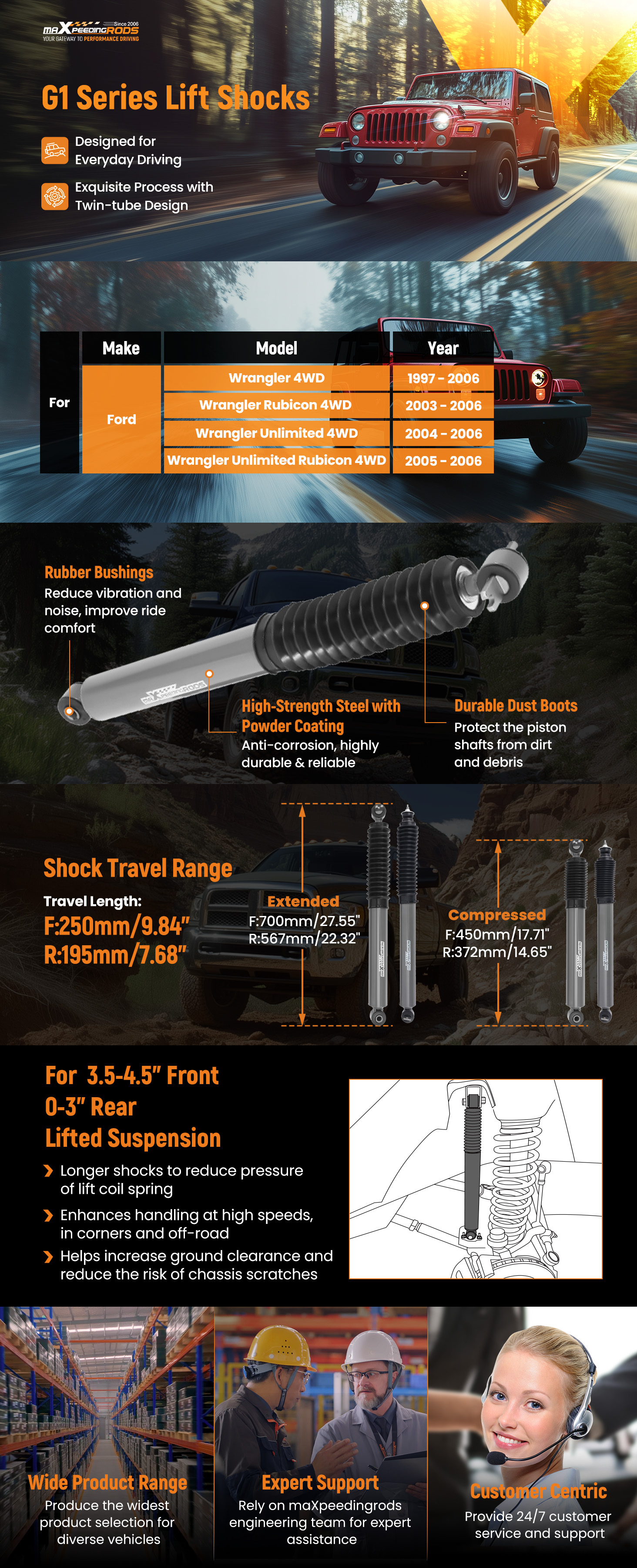 - Height:Front:3.5-4.5" Rear:0-3"