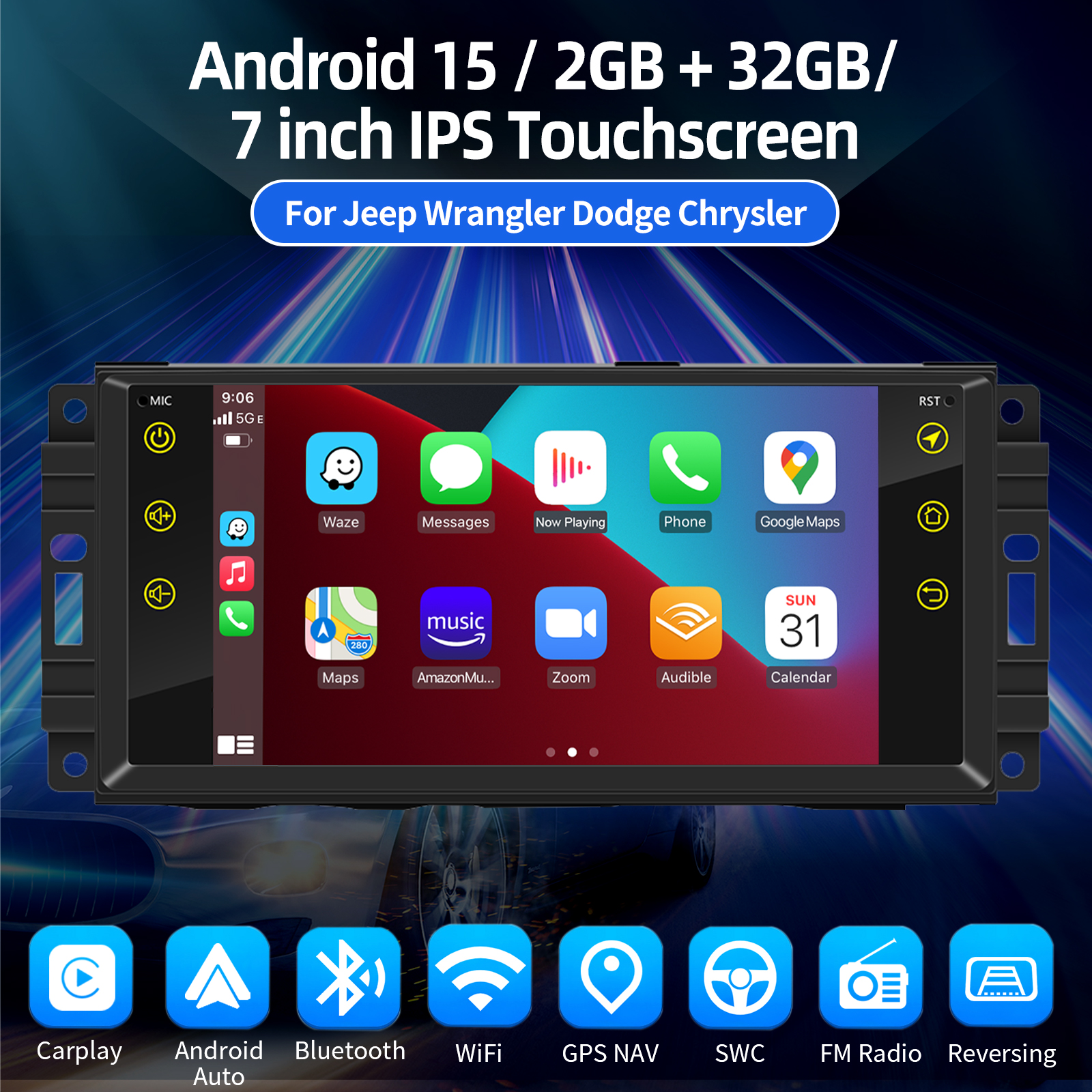 7 Inch Android 15 Car Radio : The Android car radio with 7" 1280*800 HD capacitive touch screen, 2GB RAM+32GB ROM allows you to download your favorite apps and videos, so that driving will never be boring .No additional frame, no cable change, plug and play.