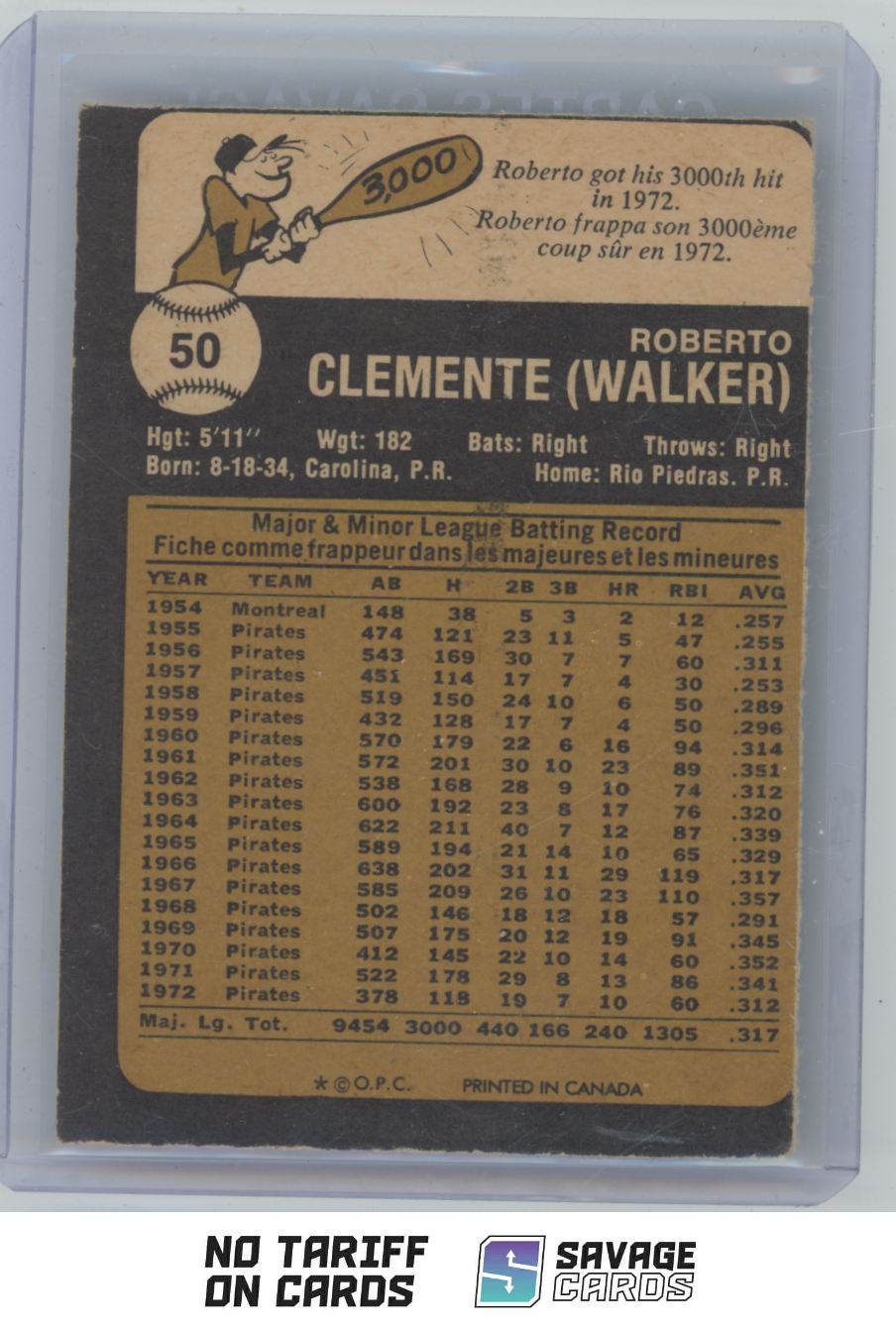 | 1973 O-Pee-Chee Roberto Clemente #50 Pittsburgh Pirates | ||||||||||||||||
