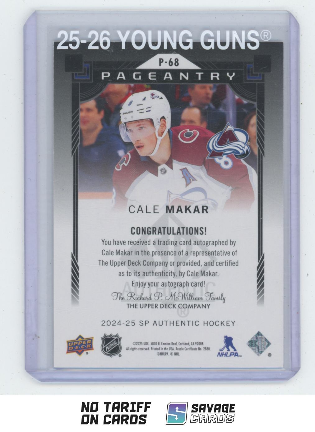 | 2024-25 SP Authentic Pageantry Auto Cale Makar #P-68 Colorado Avalanche | ||||||||||||||||