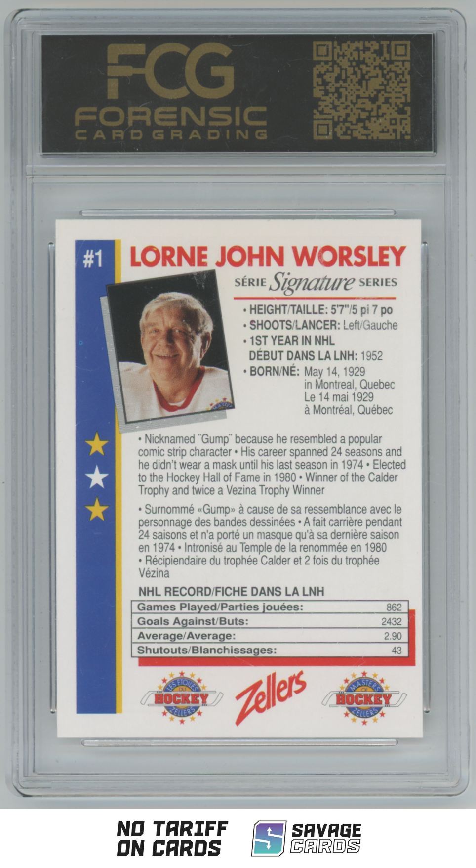 | 1993-94 Zellers Masters of Hockey Signature Series Gump Worsley FCG 9 #1 | ||||||||||||||||||