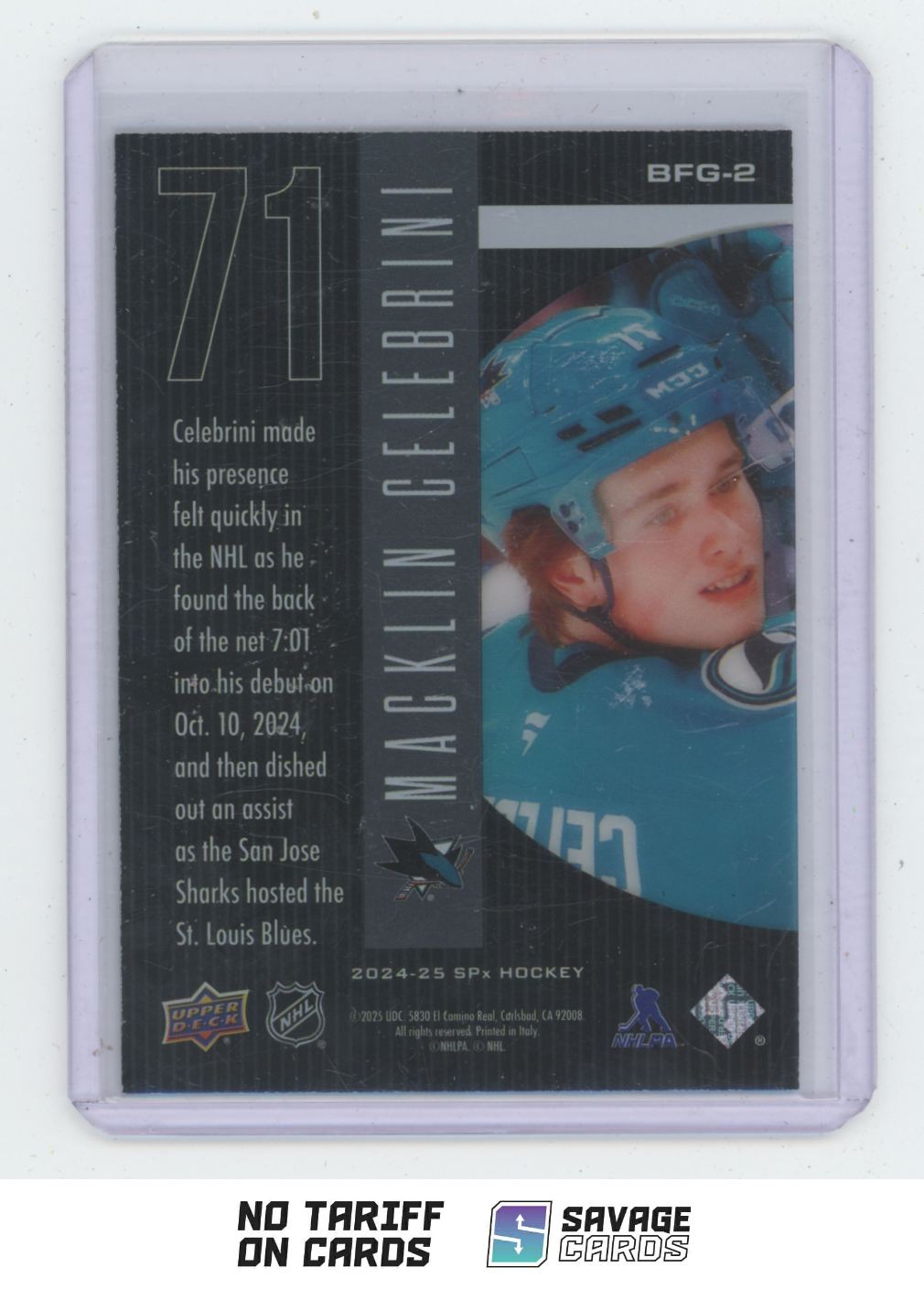 | 2024-25 SPx Bound For Glory Rookie Macklin Celebrini #BFG-2 San Jose Sharks | ||||||||||||||||