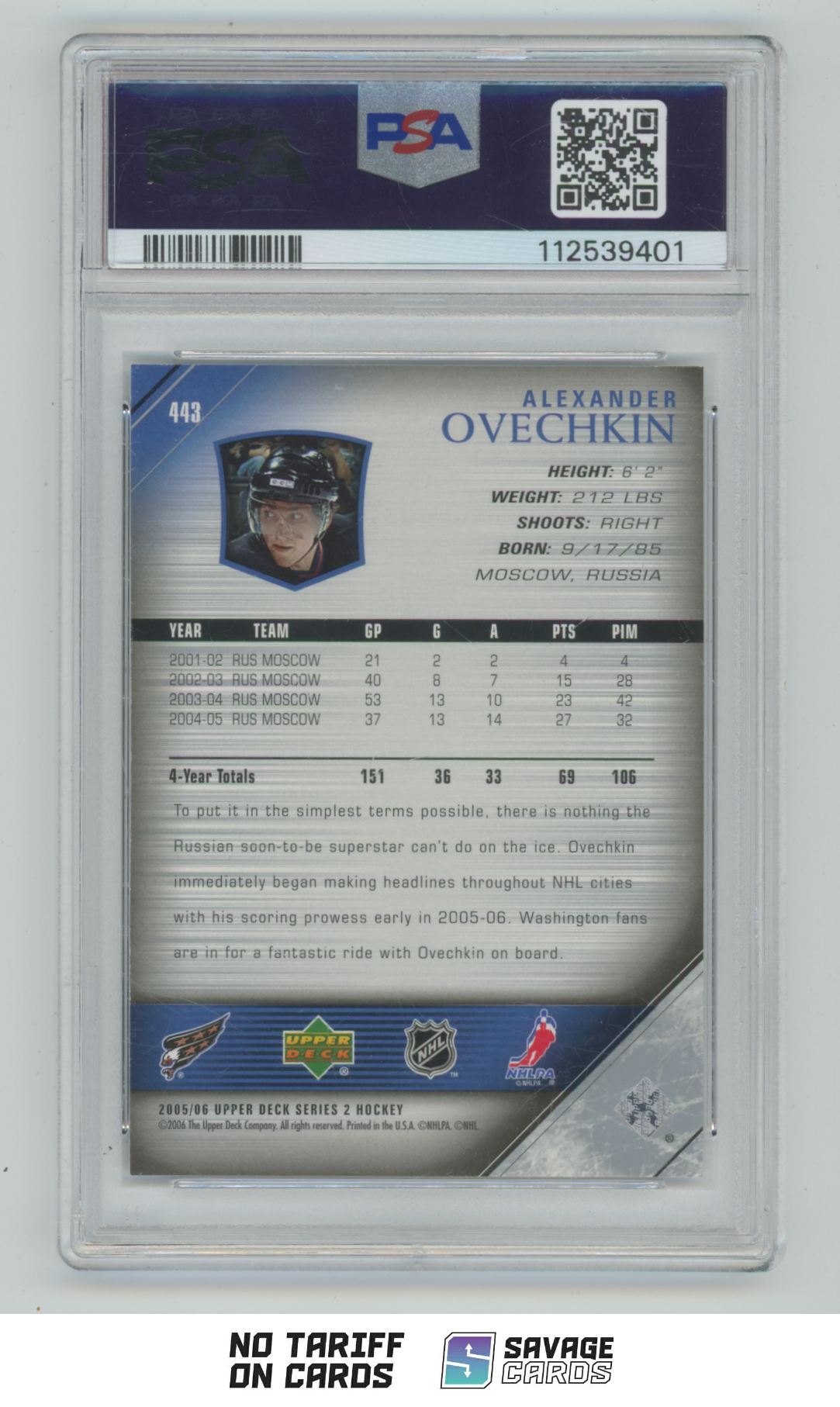 | 2005-06 Upper Deck Young Guns Alexander Ovechkin PSA 9 #443 Washington Capitals | ||||||||||||||||||