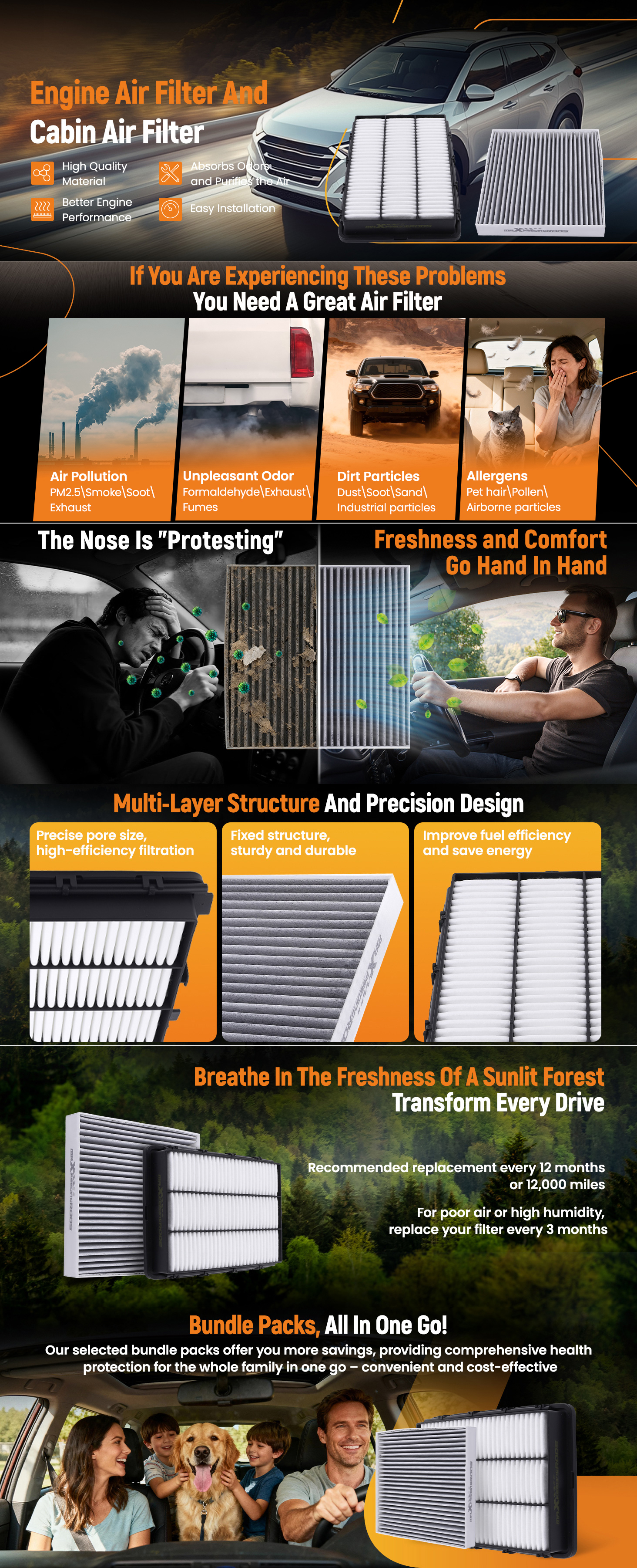 Layers Filtration:Can remove harmful pollutants(dust, pollen,exhaust etc, improve HVAC performance, reduce the stale odor that car's and ensure the air in the car fresh