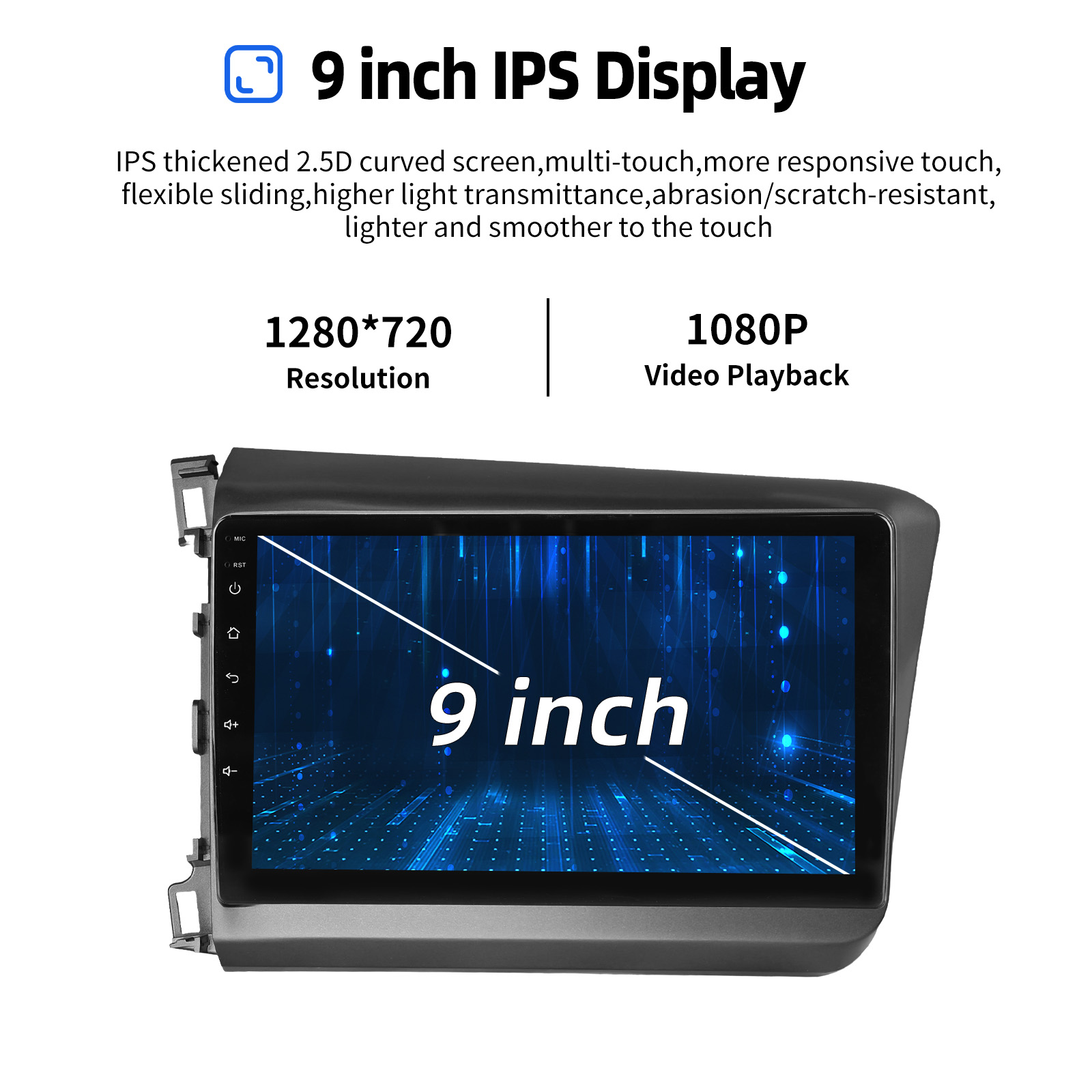 9 Inch Android 15 Car Radio For Honda Civic 2012-2015: The Android car radio with 9" 1280*720 IPS capacitive touch screen, 2GB RAM and 32GB ROM allows you to download your favorite apps and videos, so that driving will never be boring .No additional frame, no cable change, plug and play.