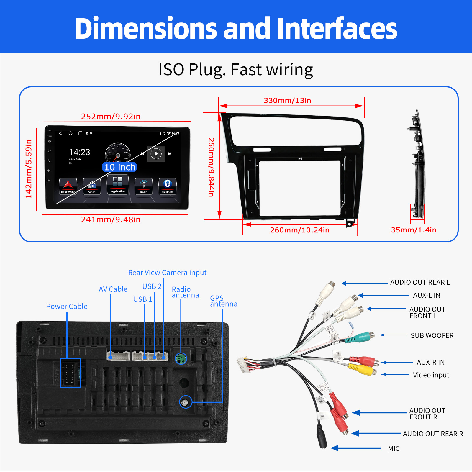RDS/FM Radio & Bluetooth & ASP Sound: Supports Bluetooth 4.1, with built-in microphone so you can make hands-free calls while driving. Support access to phone book, music playback interface, etc. RDS supported. You can save 18 FM radio stations. Built-in ASP chip. Supports 32-band EQ setting, which can be adjusted according to your personal preference. Which is very similar to your original sound. 4 x 45W amplifier, surround sound and subwoofer output
