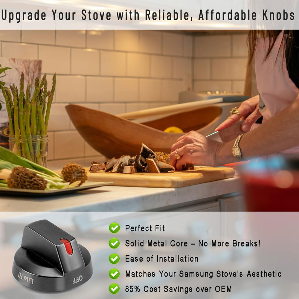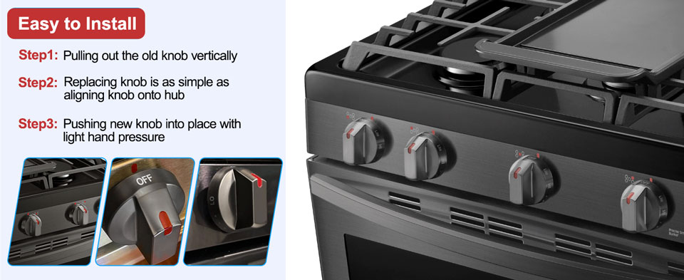 These DG64-00473B top burner stove dial knobs were desinged and upgrading by the originals, strong rings to reinforce around the middle part of the knobsto prevent cracking or short life,more sturdy and durable in construction.