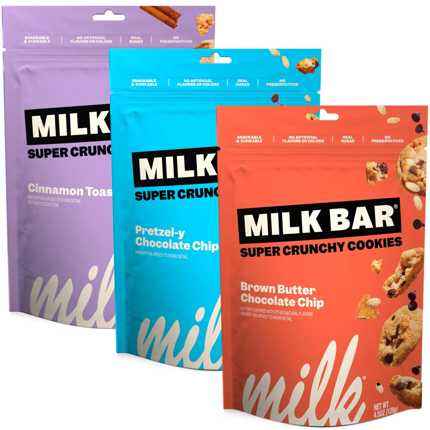 Three Iconic Flavors in One Pack: Dig into the caramelized Brown Butter, the salty-sweet Pretzel-y Chocolate Chip, and the nostalgic flavor of Cinnamon Toast—all in one convenient 3-pack.
