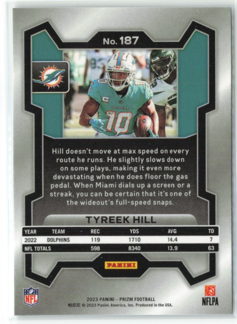 | Tyreek Hill 2023 Panini Prizm Miami Dolphins #187 | ||||||||||||||||