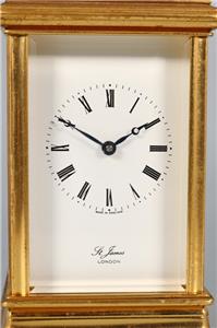 A very nice English carriage clock made by St James, LONDON circa 1980. Offered in very good working order with key.