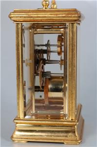The 8 day clock is running strongly keeping good time. The very heavy gilt bronze case with bevel-edged glass panels all round .