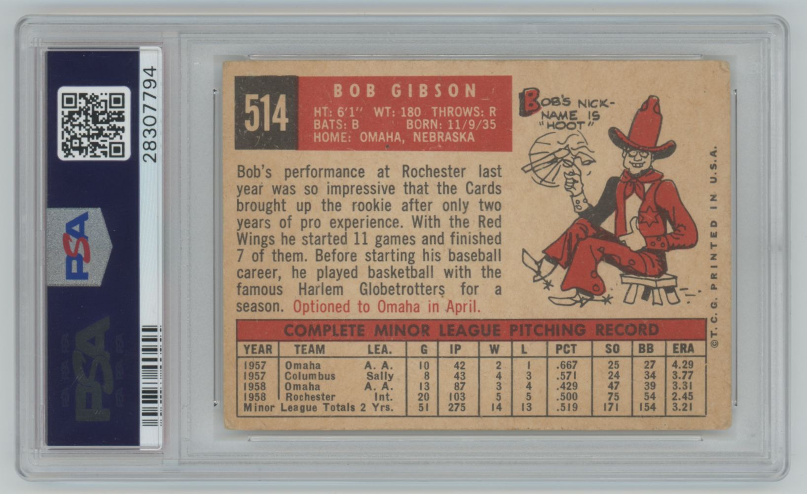 | 1959 Topps Bob Gibson Rookie PSA 2.5 St. Louis Cardinals #514 C41 |