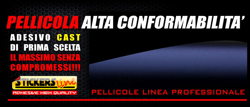 Pellicola CAST con 110 micron di spessore, conformabile e termoformabile di lunghissima durata, grazie ad una speciale caratteristica del collante della pellicola durante l'applicazione avrete la possibilità di rimuovere l'adesivo per spostarlo o cambiarne la posizione ma dopo qualche istante l' adesività diventerà permanente, osservate (nella foto qui sotto) la parte sottostante della pellicola ha un sistema microcanalizzato a nido d'ape chiamato "Air Free FT-System" per permettere all'aria di fuoriuscire da sotto l'adesivo durante l'applicazione senza lasciare bolle, alta resistenza contro gli agenti atmosferici, al tatto il film adesivo risulta perfettamente liscia come lo smalto di un auto, un altra particolarità e che sul nero opaco non si vedono gli aloni e le impronte.