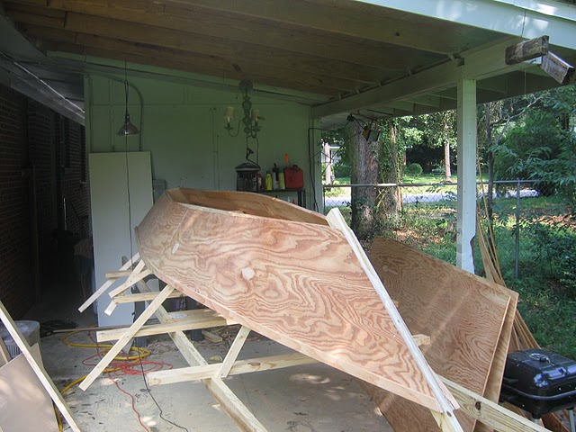 This customer bought our boat plans disk, sold separately from this auction. Boat Plans are not on this disk! -------------------------------------------------------------------------------------------------------------------------------------------------- Here are some comments and pics a customer sent us of a boat he built. The boat plan I used to build my boat was the 14' Playboy Runabout. I have pics from start to finish of the project and i'm very proud of it. I customized the plans a little to suit my needs better. I built her to drive with remote controls not from the motor, and I closed in the sides and put a storage compartment on both sides. I put a bench seat accross the back with storage underneath instead of a seat down both sides and I closed in the rear of the boat for extra storage (gas tank, battery box, tools, etc). I also fiberglassed the outside and painted it. I think the plans were great and easy to follow for the first time builder.