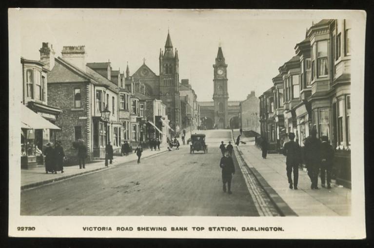 Real photo picture postcard showing Victoria Rd and Bank Top Station