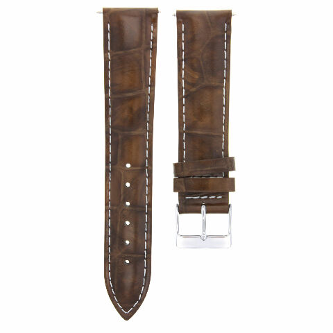 This Strap is made of genuine premium Italian leather with alligator decor, high quality light brown leather with white stitching and thick 4.5mm padding for nice look.