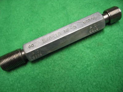 This listing is for 1 used thread plug gauge in good overall condition with most of the wax sealer on the thread ends. This is 5/8-18 NF-3. There is some minor cosmetic surface wear, like light scuffs and scratches, as seen.  There is one side labeled Go .7094 and one side labeled Not Go .7126 Thread plug gauges are used to check and test the accuracy and tolerance of female threaded openings. Don't miss your chance to own this item now!