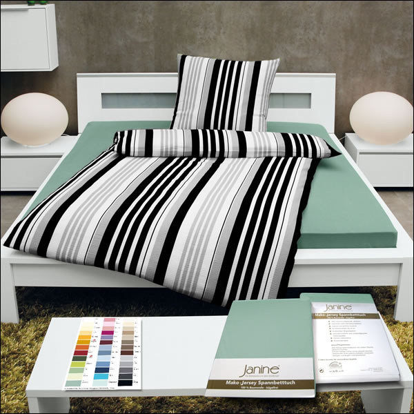 Mako Feinjersey - für einen gesunden Schlaf und für leichte und bequeme Pflege. Die spezielle Herstellungstechnik mit feinen Strickfäden und die Verwendung von edler, gekämmter Baumwolle sind der Grund für die Geschmeidigkeit und Weichheit der Classic Spannbettlaken aus dem Hause Janine.