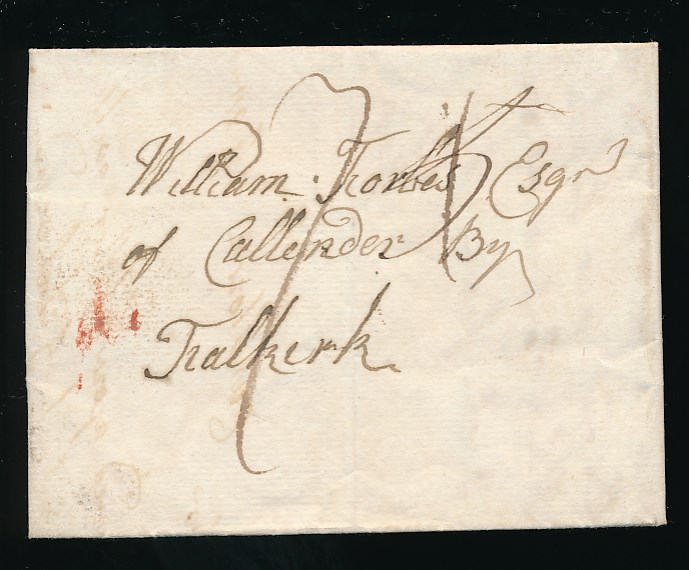 SCOTLAND 1796 NEW GALLOWAY SMALL 2 LINE + LETTER SAM CLARK to FALKIRK