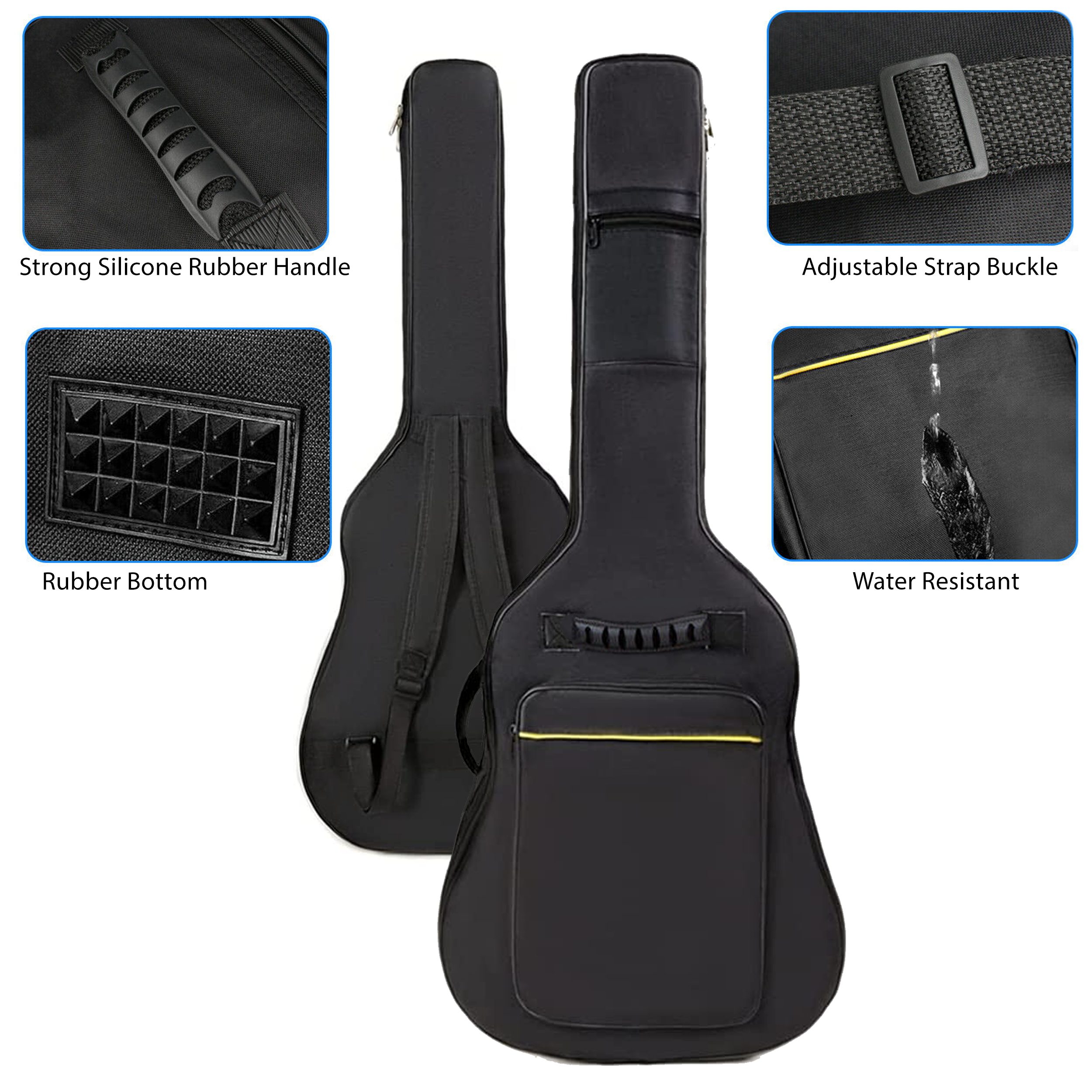 The D'Luca Acoustic Full Size 41 Inches Guitar Gig Bag is your ultimate companion for safeguarding your treasured acoustic guitar while on the move. Designed to harmoniously combine style and protection, this gig bag offers a blend of functionality and aesthetics that every guitarist desires. Crafted with care, the D'Luca Acoustic Gig Bag is tailored to snugly fit full-size 41-inch acoustic guitars. Its 0.35 in thicker padded interior protects your instrument, ensuring your guitar's safety. Water-resistant material, it guards your guitar against light rain and minor spills, making it a reliable choice for musicians on the go.