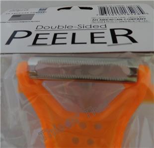 Peeler is made of plastic with metal heads.