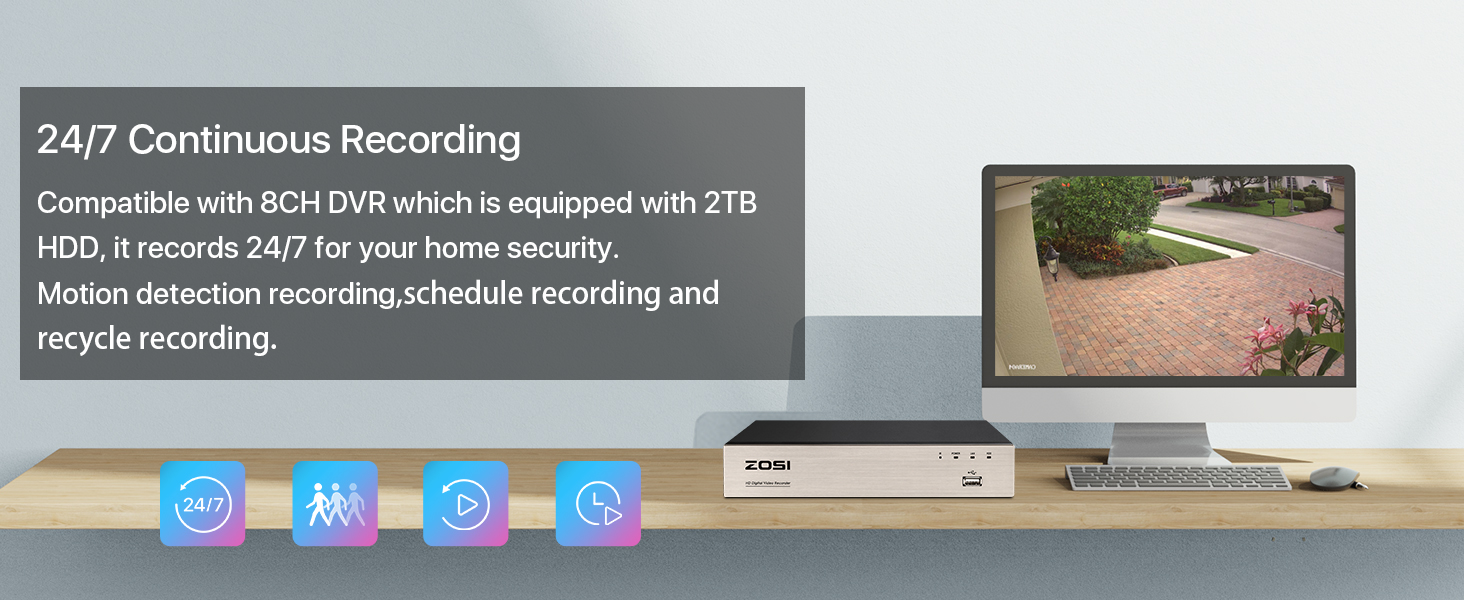 All videos are securely stored in the DVR with 2TB HDD for review so that you’ll never miss any important moment.