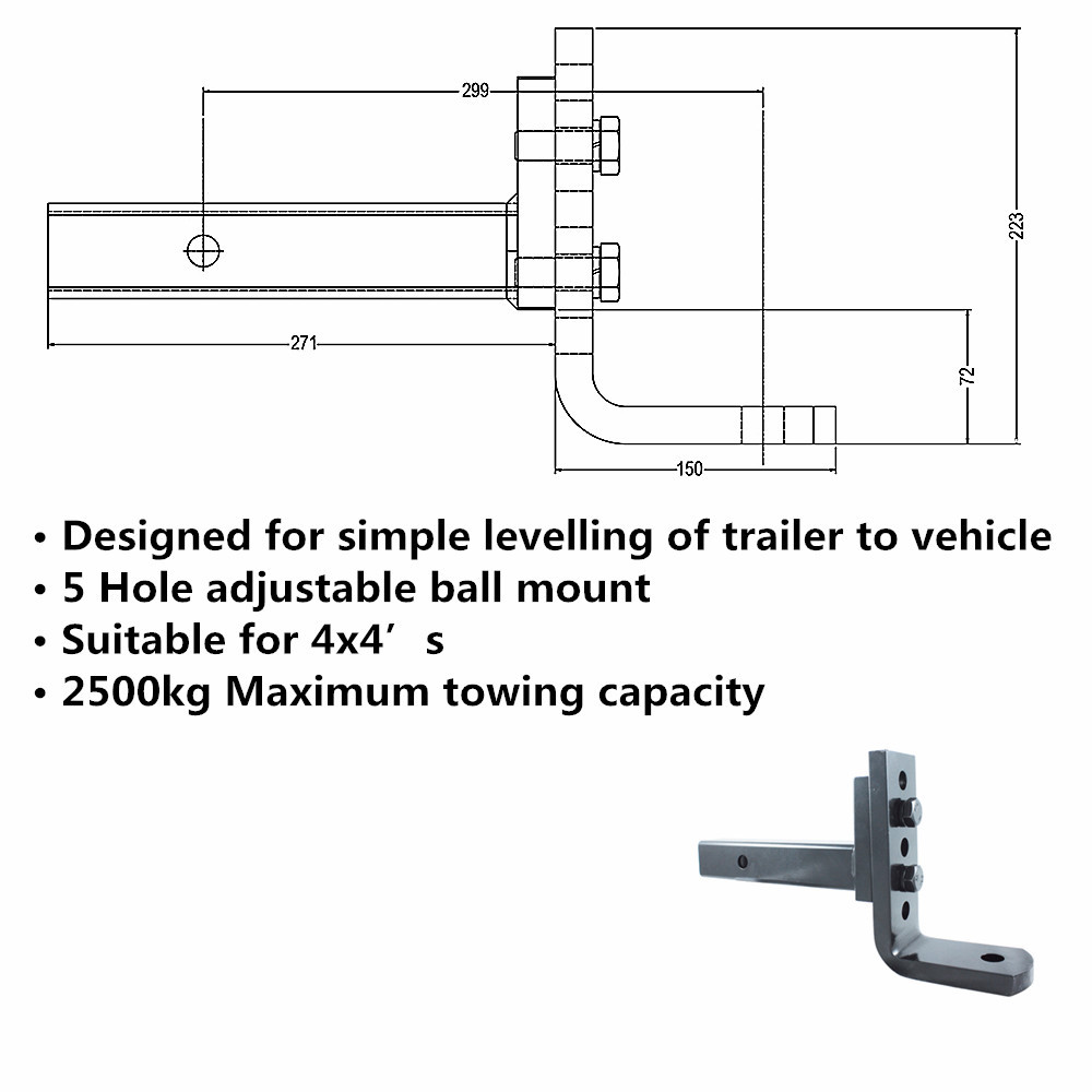 1 X Adjustable Tow Ball Mount with 50mm Towball