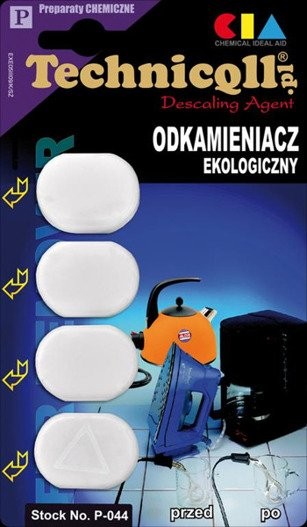 1. Dissolve one tablet in 1/4 liter of hot water (14g of agent removes 20g of scale)