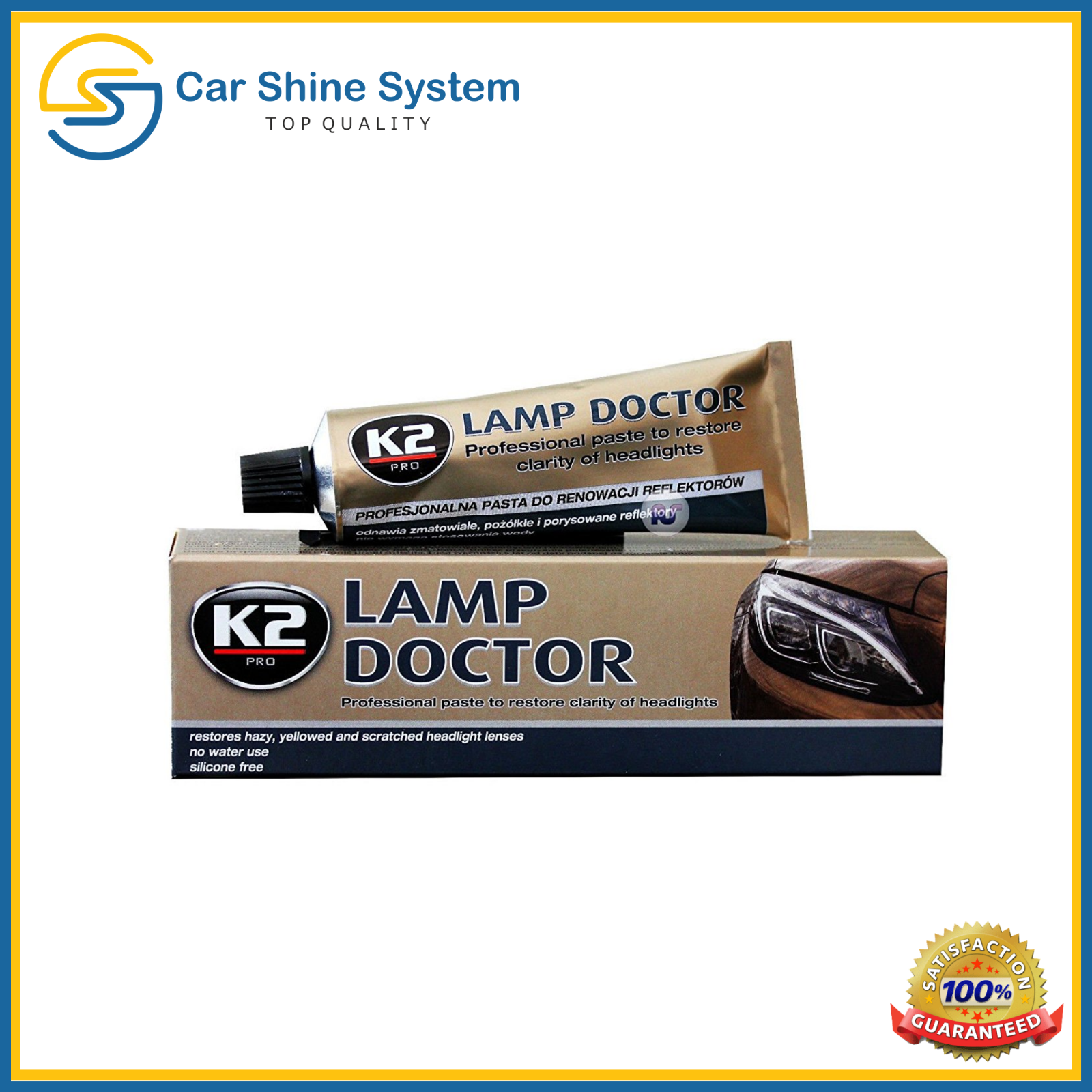 Use of K2 Lamp Doctor paste makes the headlights look like new with brilliant clarity and long-lasting protection