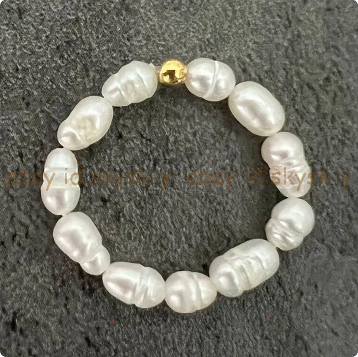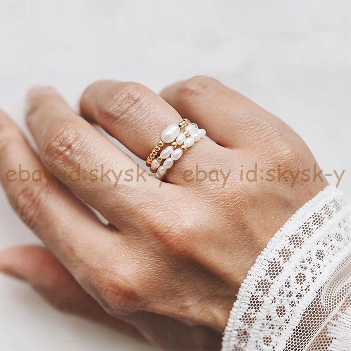 3 Pcs Women 4-5mm Natural Freshwater Pearl Beads Spacer Stretchy Finger Rings