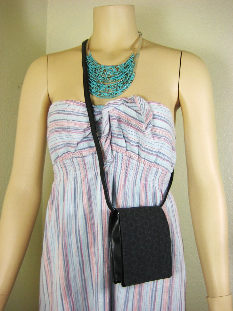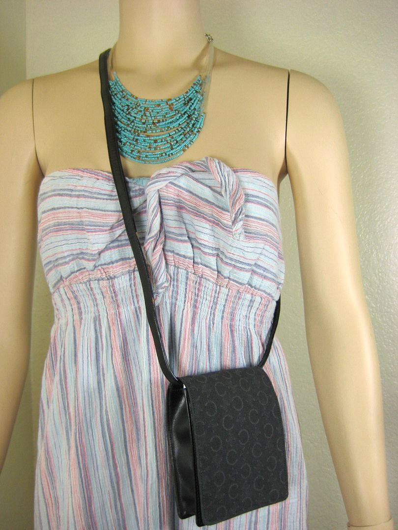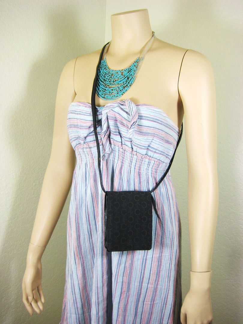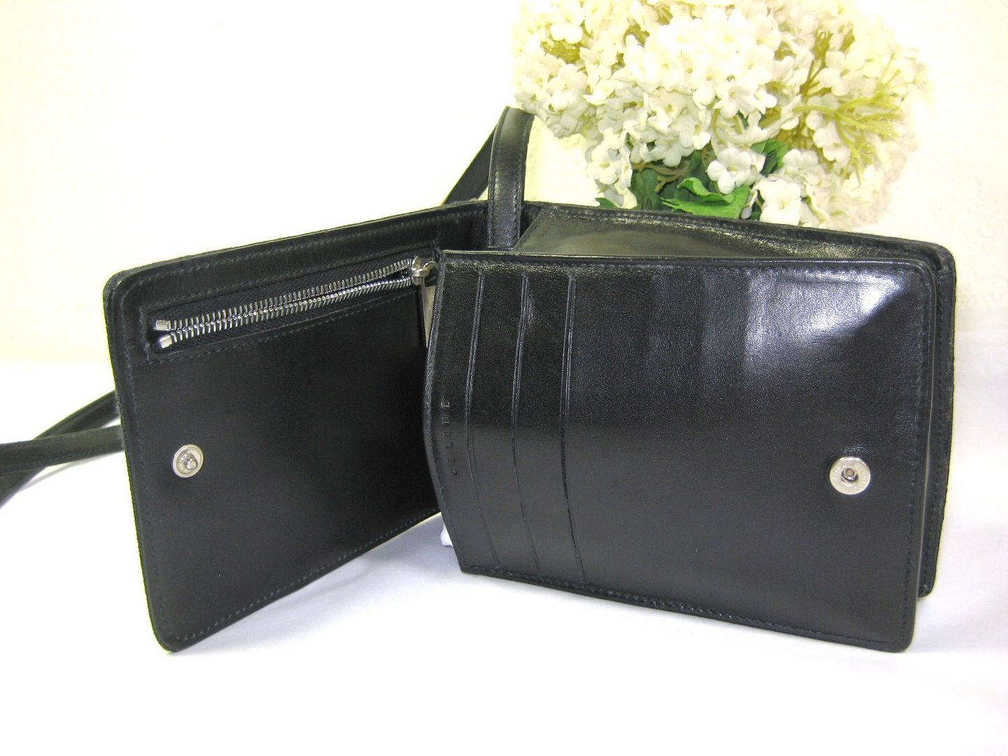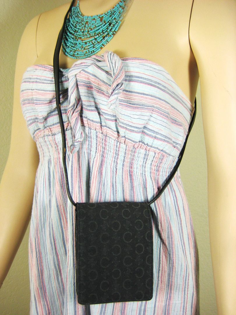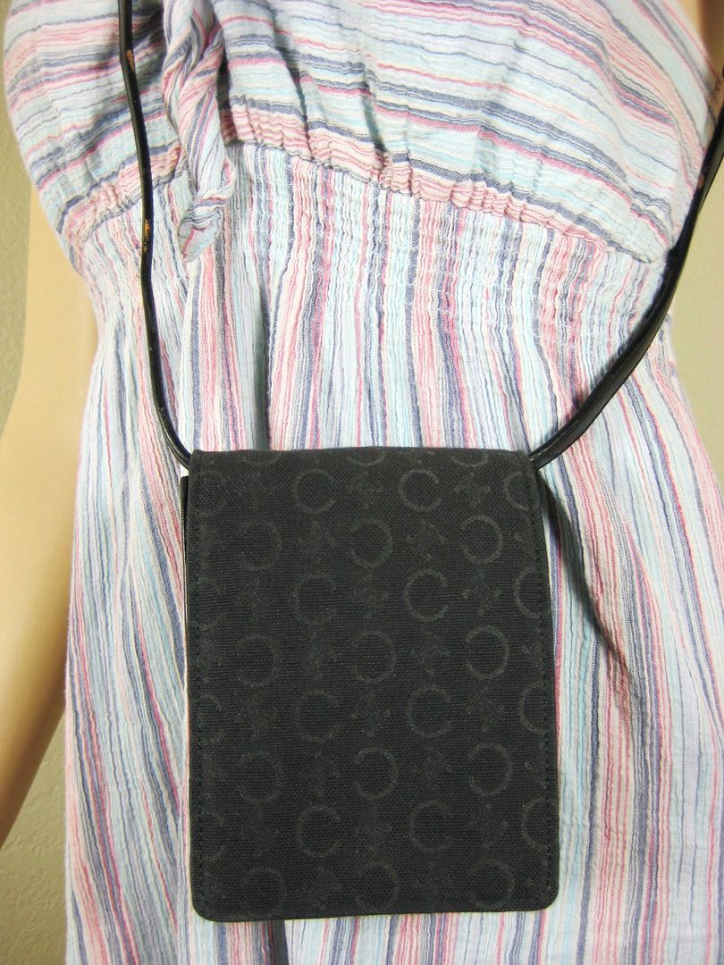 This is an authenticity guaranteed CELINE grey thick canvas and leather Passport / Sling bag / wallet.