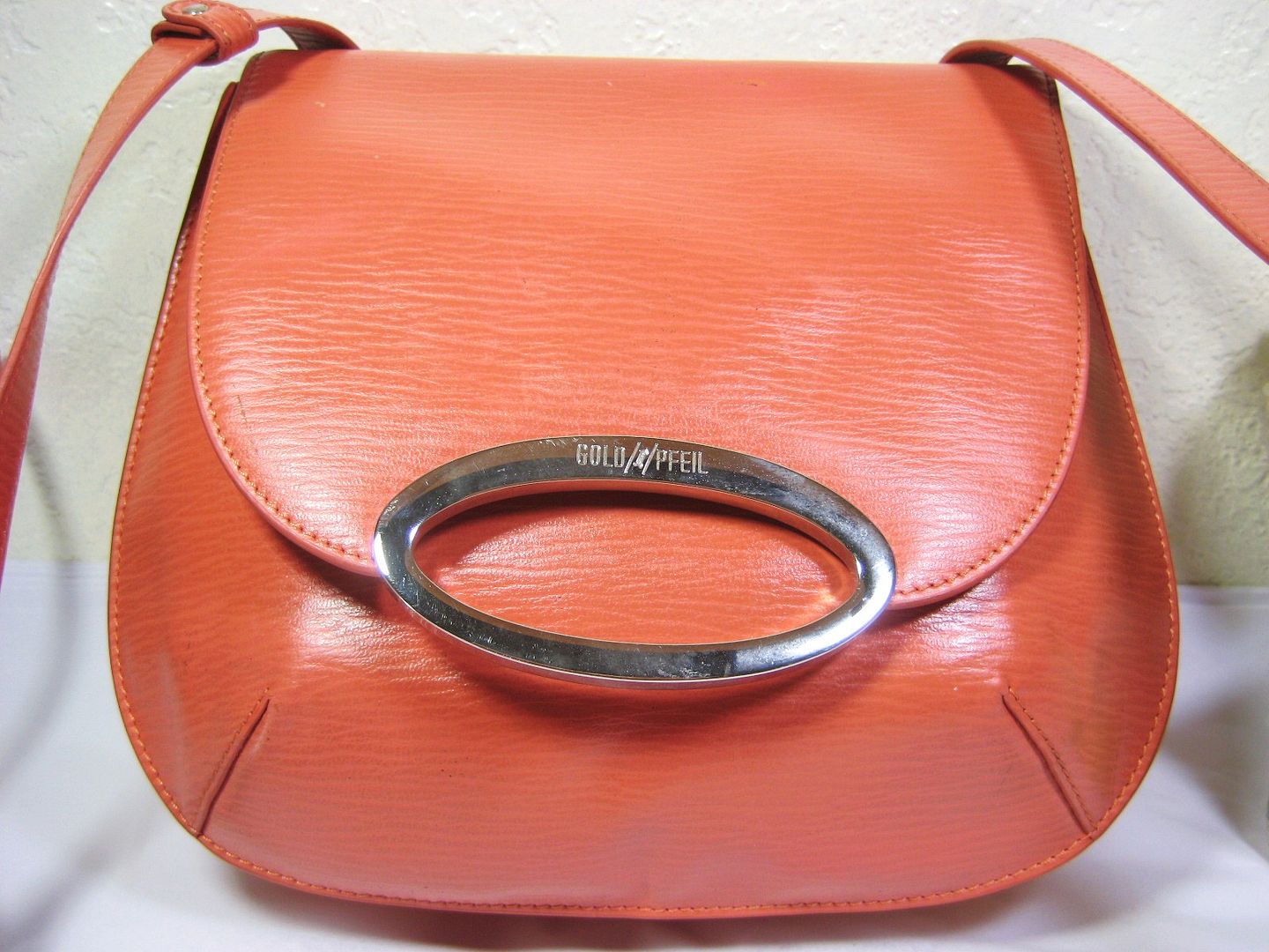 This is an older, vintage and gently used GOLD PFEIL shoulder bag with some minor cosmetic flaws: