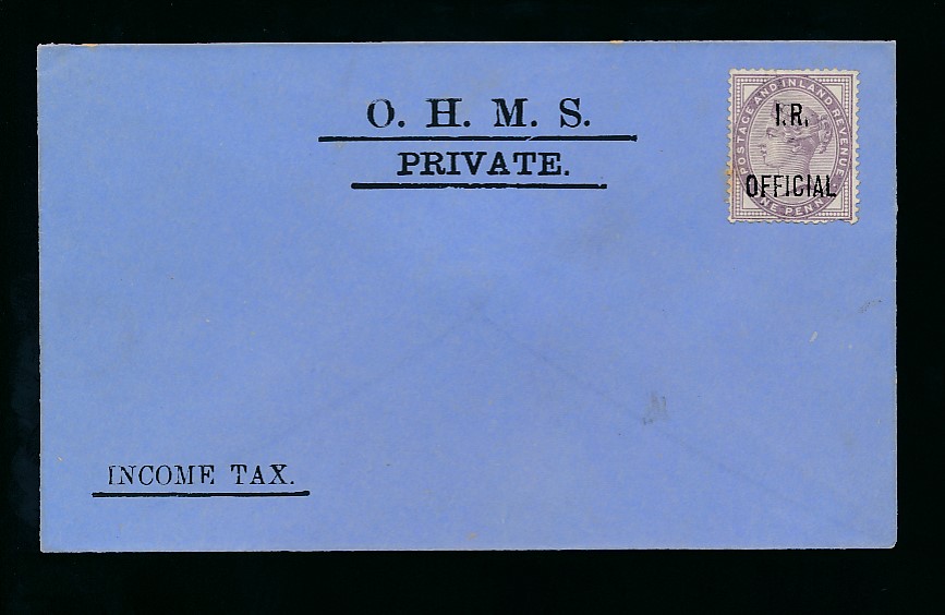 OHMS Income Tax printed envelope with Queen Victoria 1d lilac I.R Official franking; fine unused.