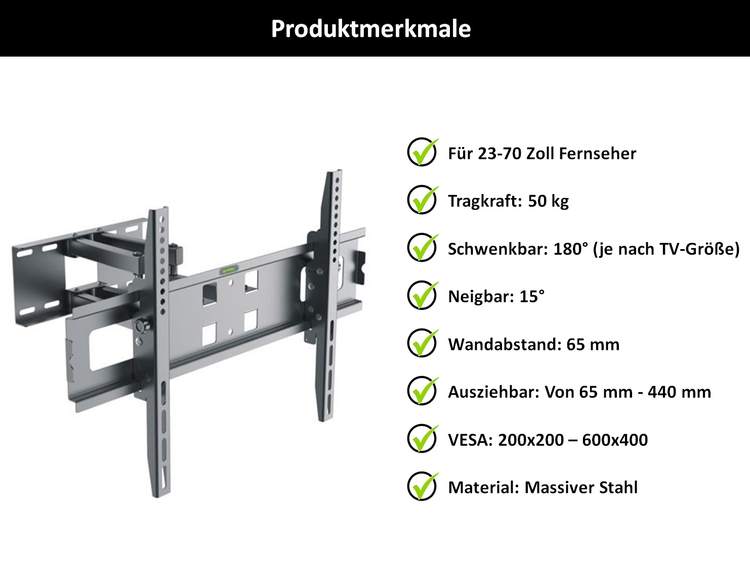 VESA 200x200 - 600x400 Schwenkbar / Neigbar / Drehbar / Ausziehbar