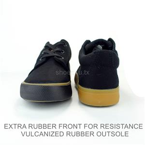 * High quality Vulcanized rubber non-slip outsole with extra black rubber front for resistance.