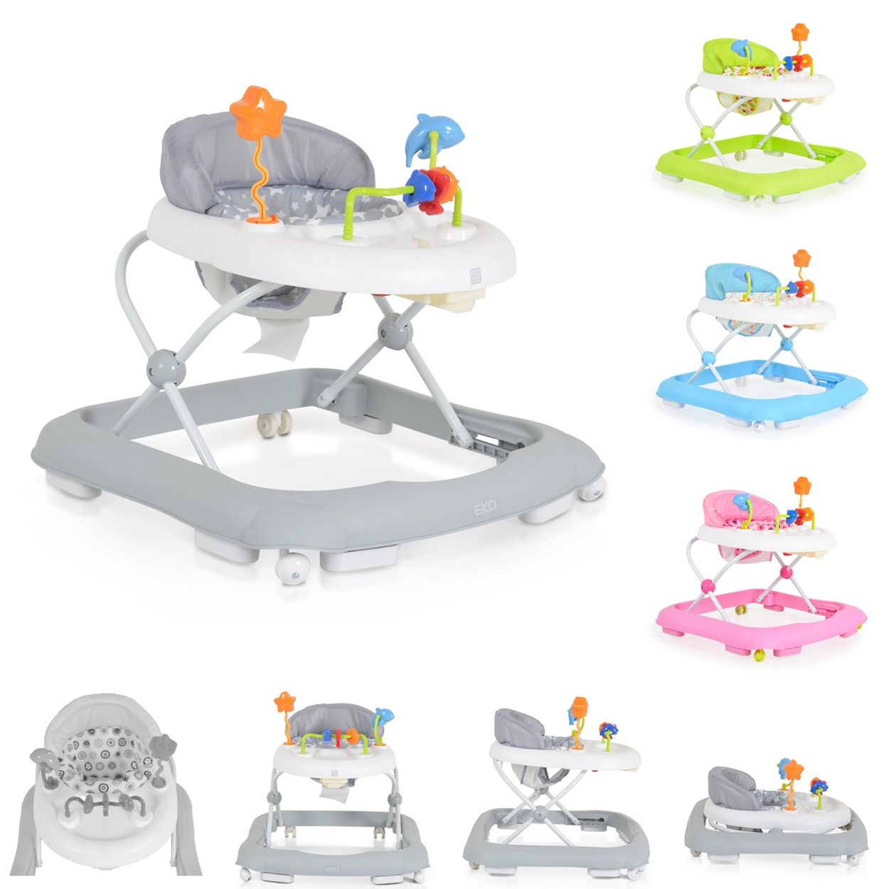 Die Lauflernhilfe Eko ist ein Gehfrei höhenverstellbar für Ihr Baby ab 6 Monaten mit einem Spielcenter.