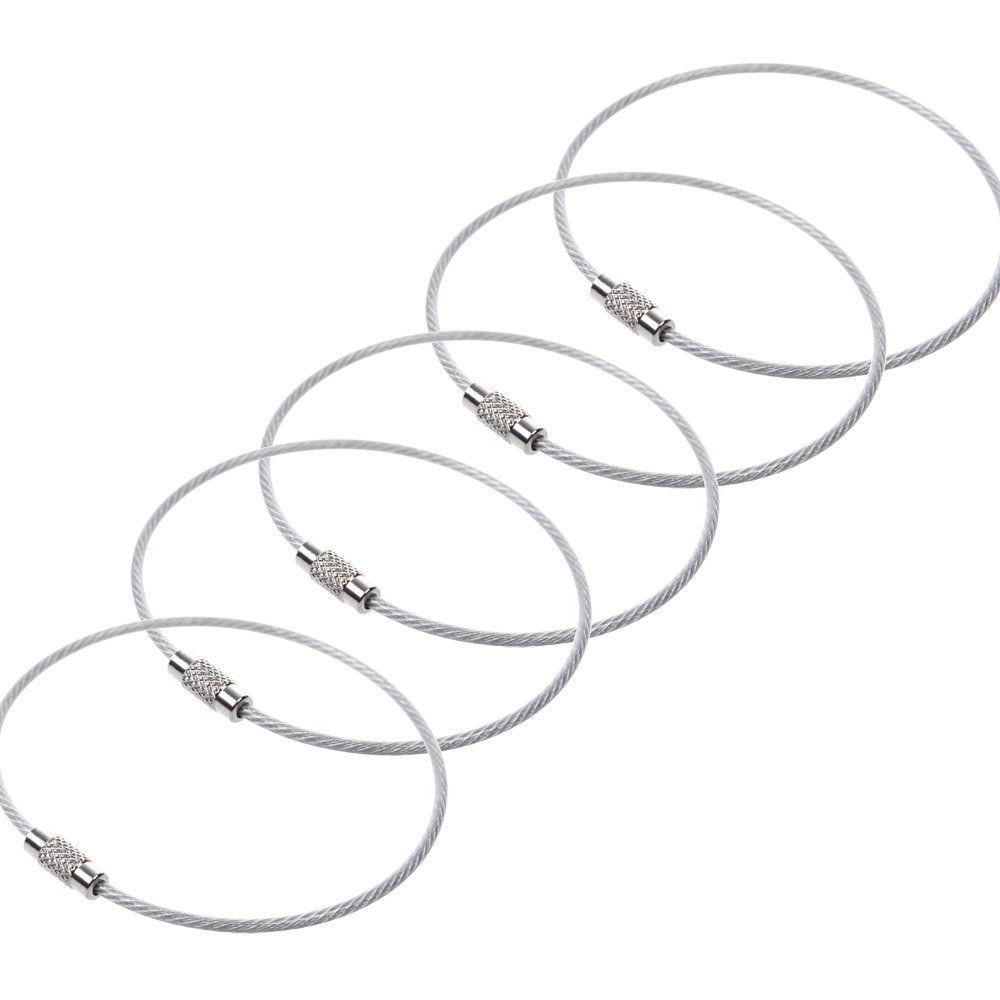 10PCS Stainless Steel EDC Aircraft Cable Wire Key Chain Ring Twist Screw Locking
