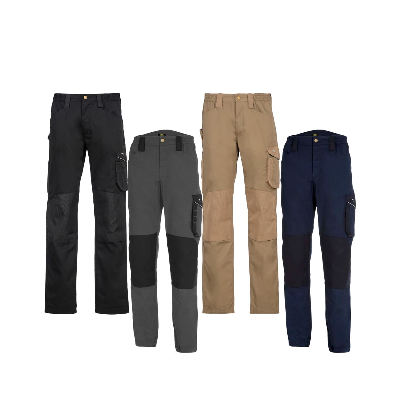 Presentano delle dettagli in contrasto in poliestere canvas e le triple cuciture per una maggiore resistenza del capo; dei dettagli riflettenti per essere più visibili in strada o in cantiere e le tasche porta ginocchiere per chi lavora spesso in ginocchio. Ha due tasche anteriori e due posteriori e una sulla gamba. Sull'altra gamba, inevce c'è il passante portamartello e la tasca portametro.