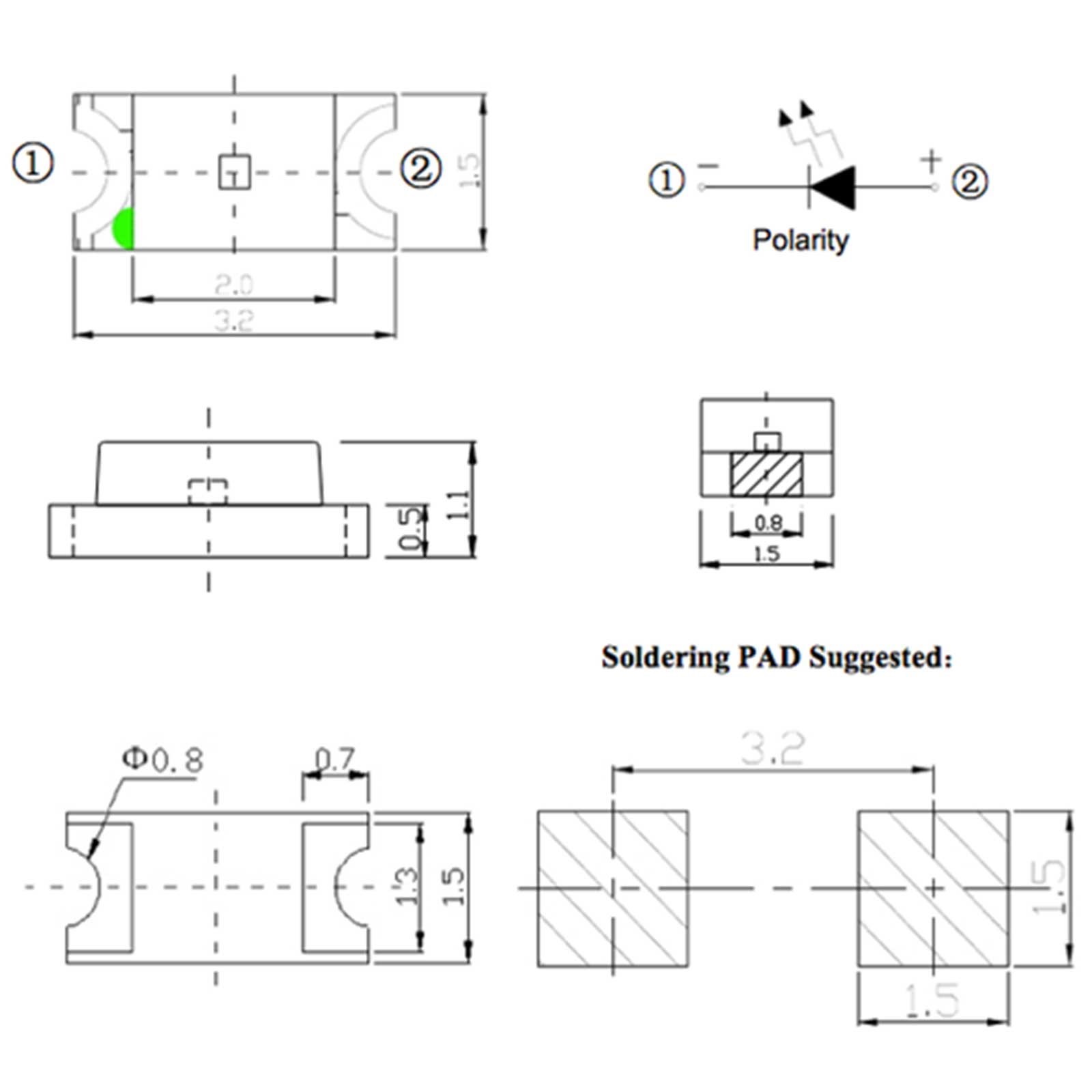 | Size | 1206 / 3216 Pre-Wired SMD LED |
