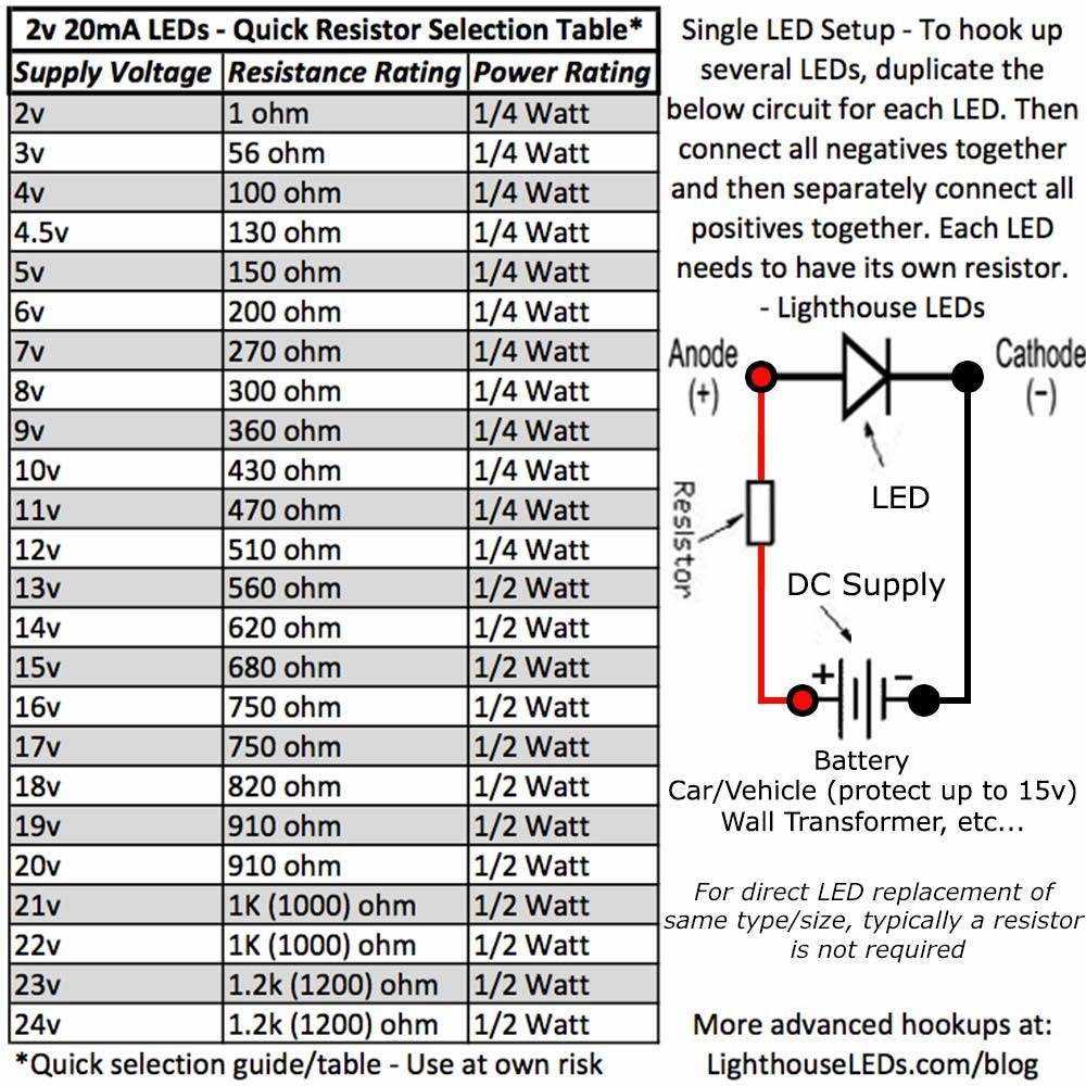 This single setup works well with the following voltages (you don't have to select a voltage when ordering): 9, 10v, 11v, 12v, 13v, 14v, 15v, 16v, 17v, and 18v. While we advertise 9v as the lowest they will work with, they still typically work well at lower voltages. If you want to optimize the light output for any specific voltage and you know what resistor you want then it is very easy to change the resistor because we have added it on to the end in this particular 0603 Nano pre-wired led design. We have done it this way because the LED is obviously meant to be used in small or confined spaces and we don't want the resistor to get in the way. You can also ask us for suggestions on resistor selection for lower voltages or refer to our resistor charts on the specific LED product pages that will help with the optimal resistor to use with lower voltages.