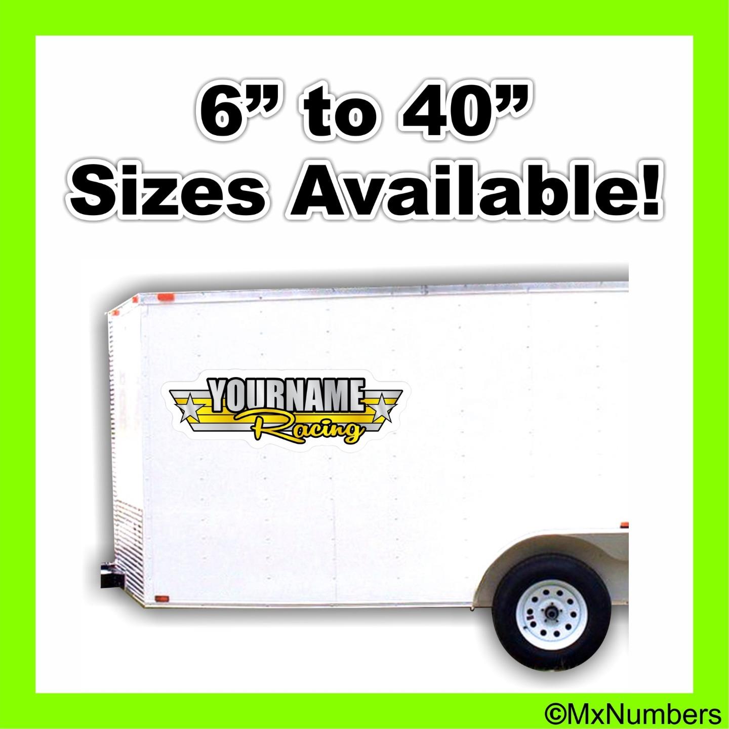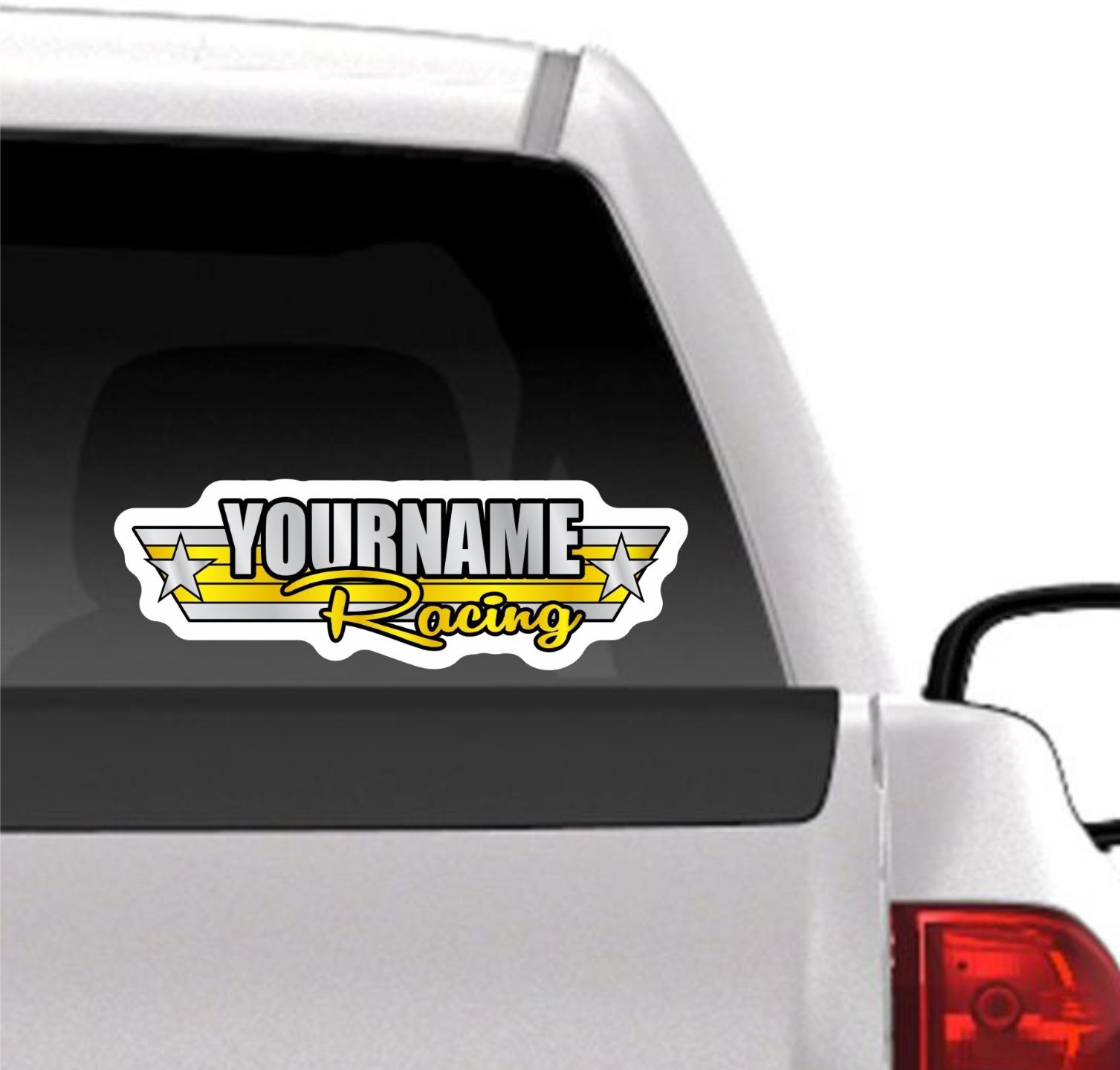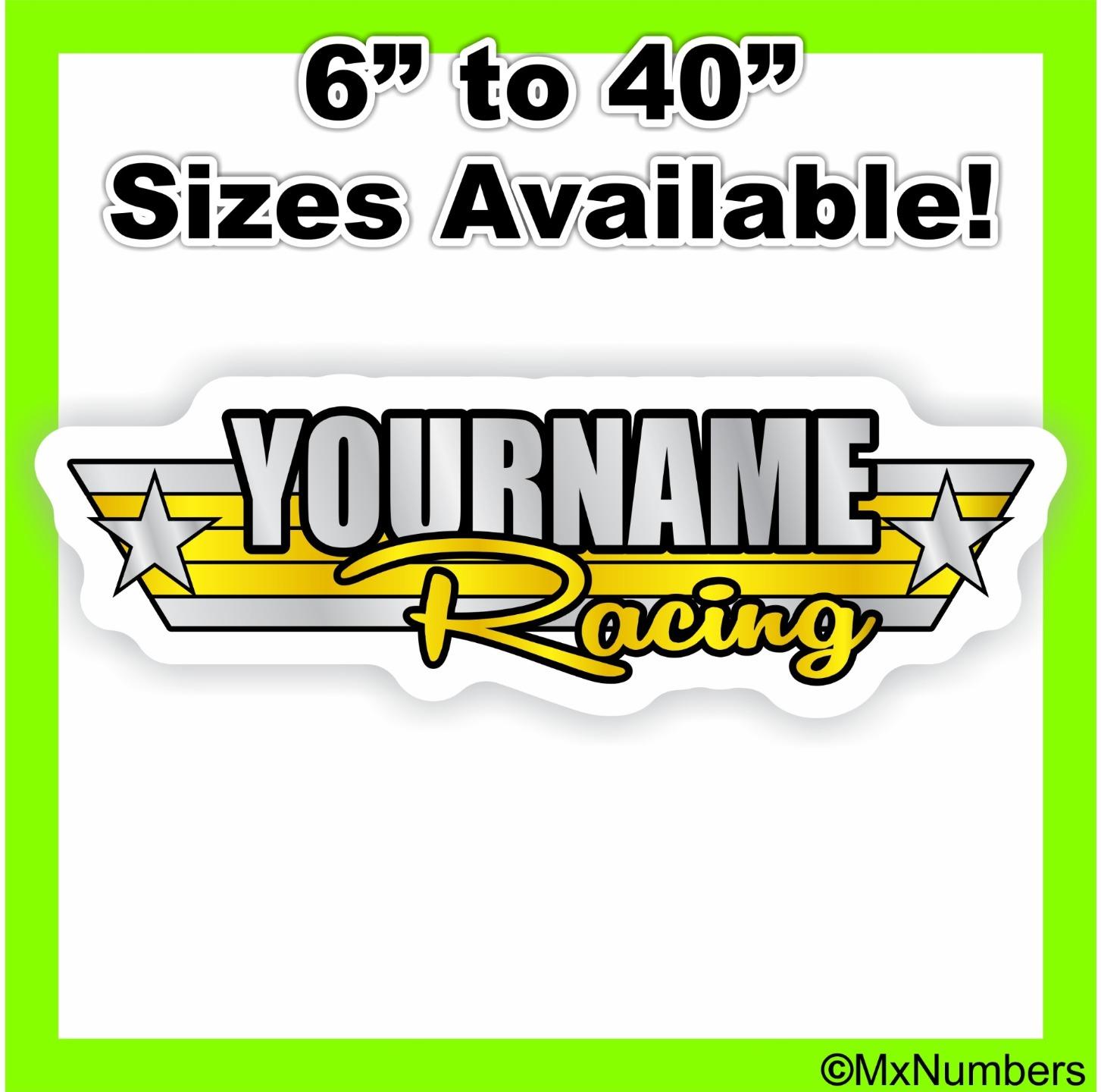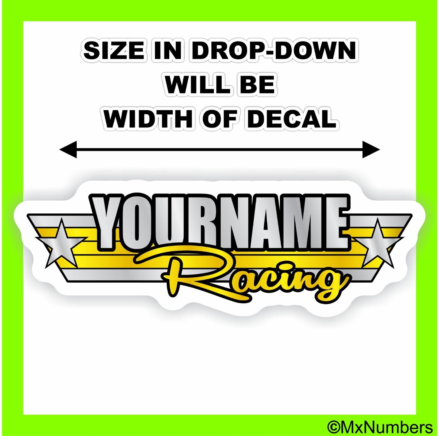 This listing is for Custom Made Racing Decal with your Name/Text. You will choose the Size/Quantity in the Drop Down. All of the decals will be made with the same name and color. If you need different names, please order multiple items. If you need it larger or need something custom, please use the contact us on the top right, then tell us in detail what you need and we can help you get it made!