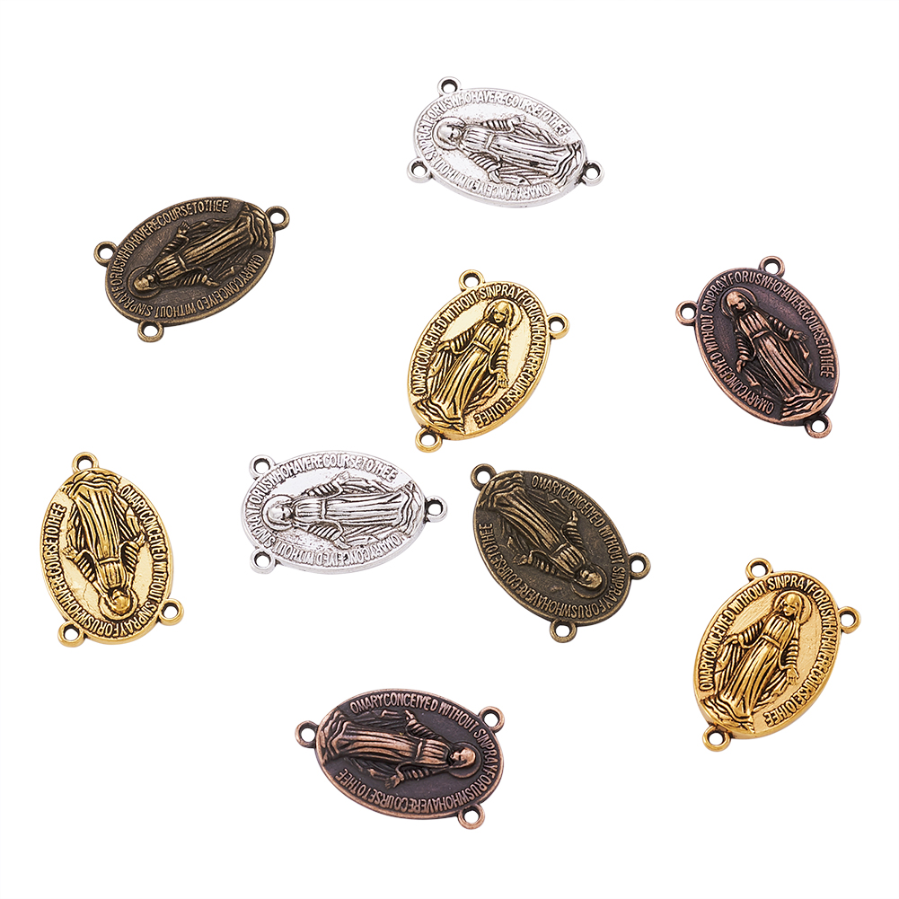 Tibetan Style Oval with Virgin Holy Rosary Center Parts Chandelier Links, Lead Free & Nickel Free,For DIY Craft Necklace Jewelry Making.