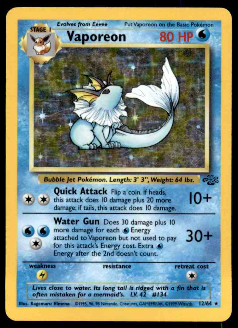 1999 Pokemon Card Jungle 12/64 Vaporeon EXC/Near Mint